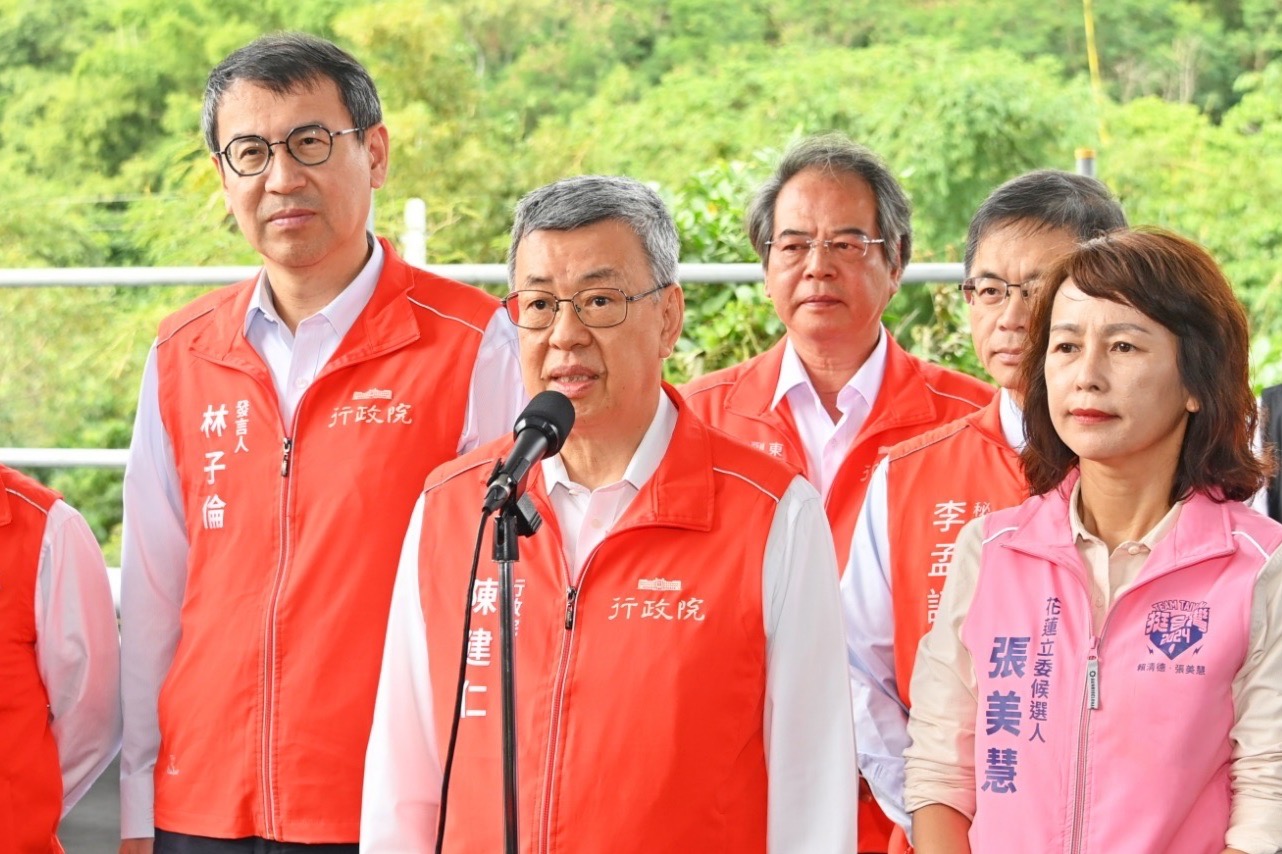 陳院長指出,行政院於2016年核定「台9線花東縱谷公路安全景觀大道計畫」,自2017年開始逐年編列預算,並於去年將原核定計畫經費94.7億元提升至151.18億元,以提供民眾更好的交通基礎建設,而今日視察的「木瓜溪橋改建工程」即是該計畫工程之一。院長進一步表示,去年918地震後,花蓮地區有部分橋梁受損,行政院核定補助19.38億元,以提升花蓮地區橋梁安全;此外,交通部近年來亦補助花蓮縣政府辦理多項道路建設計畫,包括「生活圈道路交通建設計畫」、「前瞻基礎建設-提升道路品質計畫」與「省道改善計畫」等,近年來中央政府投資花蓮地區交通建設經費高達近300億元,顯見政府對於花蓮地區交通建設的重視。