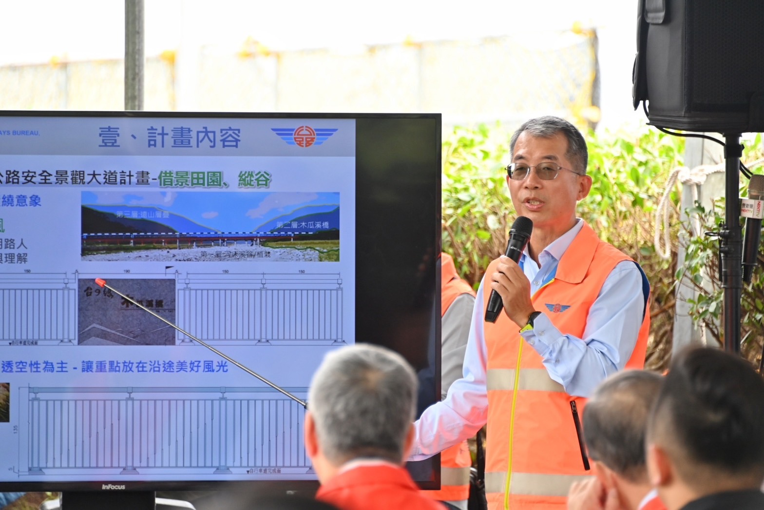 陳院長表示,「台9線花東縱谷公路安全景觀大道計畫」以融入「安全」、「景觀」、「人本」及「生態」等元素為設計理念,同時考量道路的耐震與耐洪能力,以因應東部地震帶與極端天候的影響,巧妙融合當地自然之美與現代化基礎設施,打造出一條更多元化、現代化且安全性更高、風景更美麗的「台9線景觀大道」,除了提升交通安全,也為促進地方經濟發展、觀光旅遊、鄉親生活品質及生態環境保護做出貢獻。院長說,台9線景觀大道穿越平原和高山,既是交通運輸的動脈,也是融合田園風光與縱谷景觀的路廊,用路人可以一路欣賞山稜線和田園交融的風景,享受花東縱谷的壯麗風情。院長也呼籲每一位旅者在享受充滿驚喜和美麗的旅程之餘,不忘保護及珍惜花東縱谷獨特的生態環境。