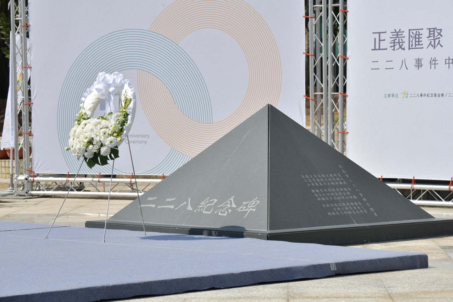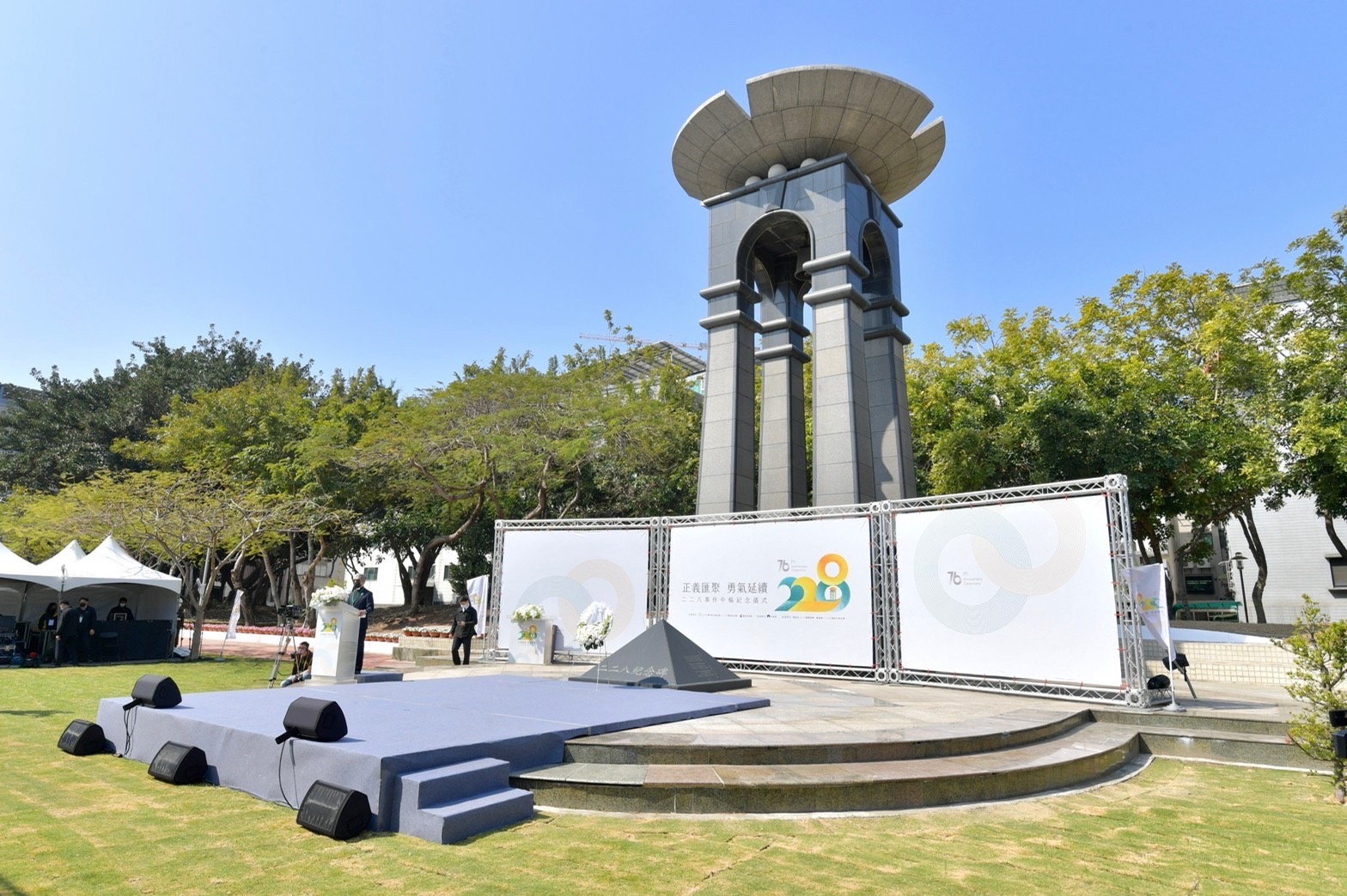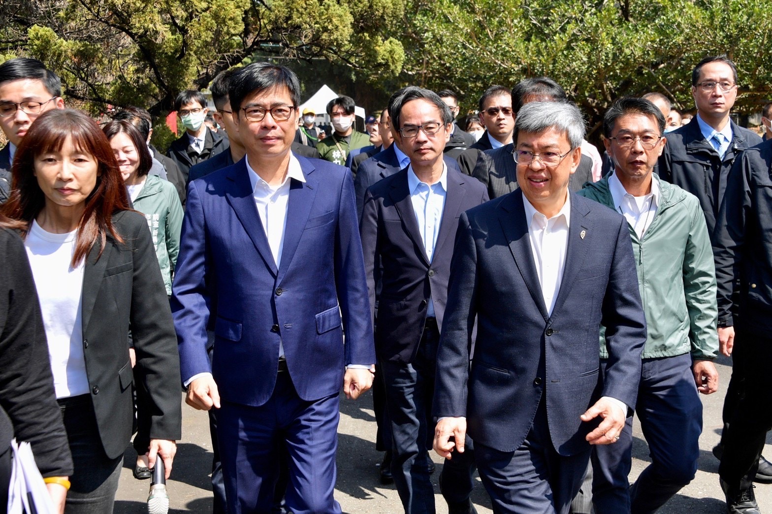 今日稍早陳院長也陪同蔡英文總統至臺南市二二八紀念公園出席「二二八事件76周年中樞紀念儀式」,由張士芃博士演奏小提琴向二二八英靈獻樂,接續蔡總統獻花向受難者致敬,並由金曲歌王謝銘祐獻唱《日子》及《攬入心肝》等歌曲。隨後,蔡總統頒發回復名譽證書予受難者蘇水木先生之子蘇清雲先生,陳院長及現場貴賓全程觀禮,場面莊嚴隆重。