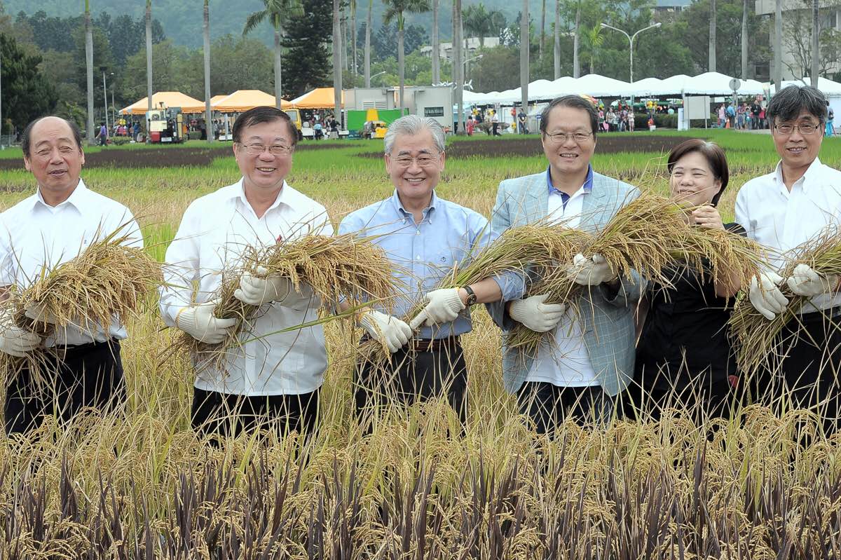 隨後,毛院長聽取農業地理訊系統(GIS)簡報,並配戴立體眼鏡觀看農作植栽分布航遙測影像判釋、土壤地文繪圖等圖資。此外,農試所以擴大開放及田間實物展示呈現農業科技研發成果,毛院長除參觀光復後具歷史意義水稻品種田間展示外,並持鐮刀收割稻作,見證農試所120年對我國農業的貢獻。