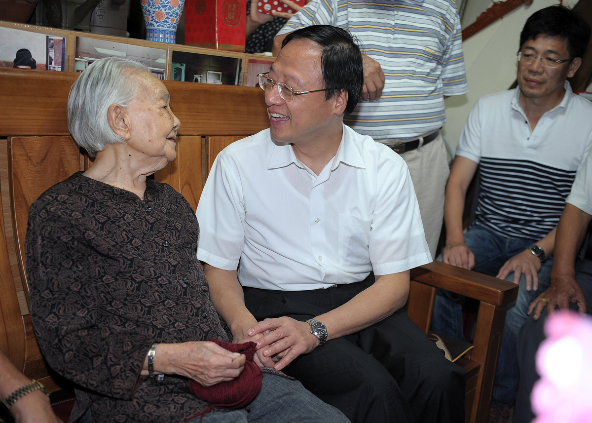 行政院長江宜樺今(1)日上午在重陽節前夕前往基隆探視人瑞朱妹女士後表示,近年來人口老化現象非常明顯,政府每年都編列經費強化老人照護設施,希望政府在老人福利政策上的努力,能充分照顧到每一位資深公民。