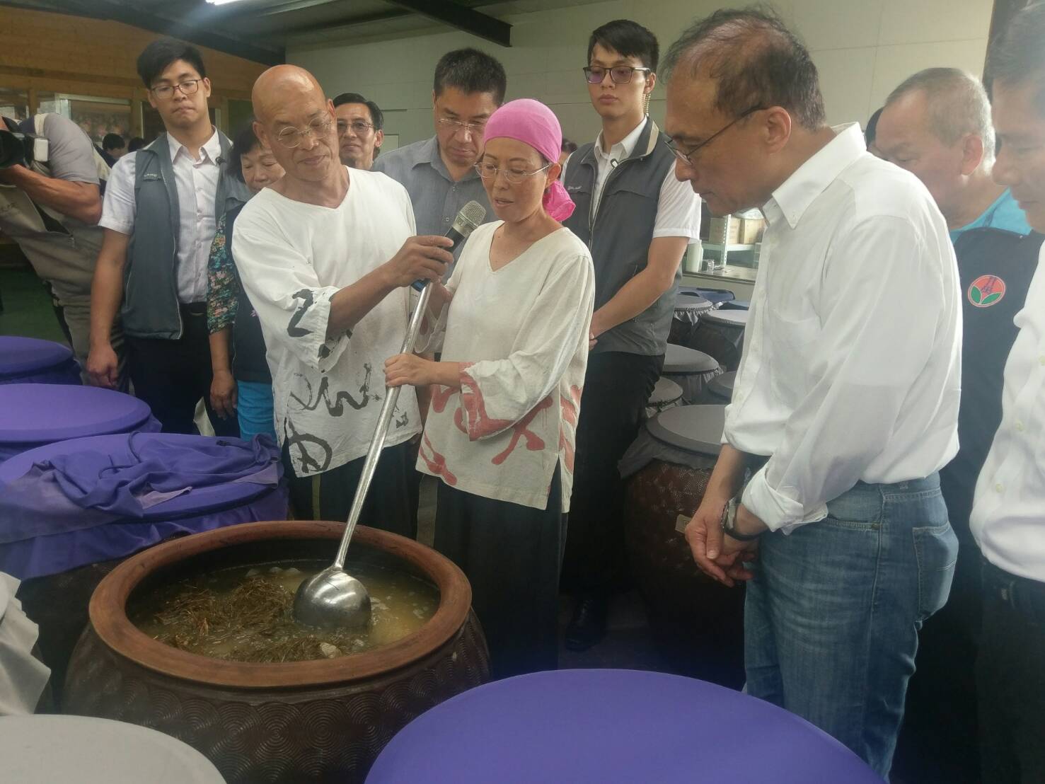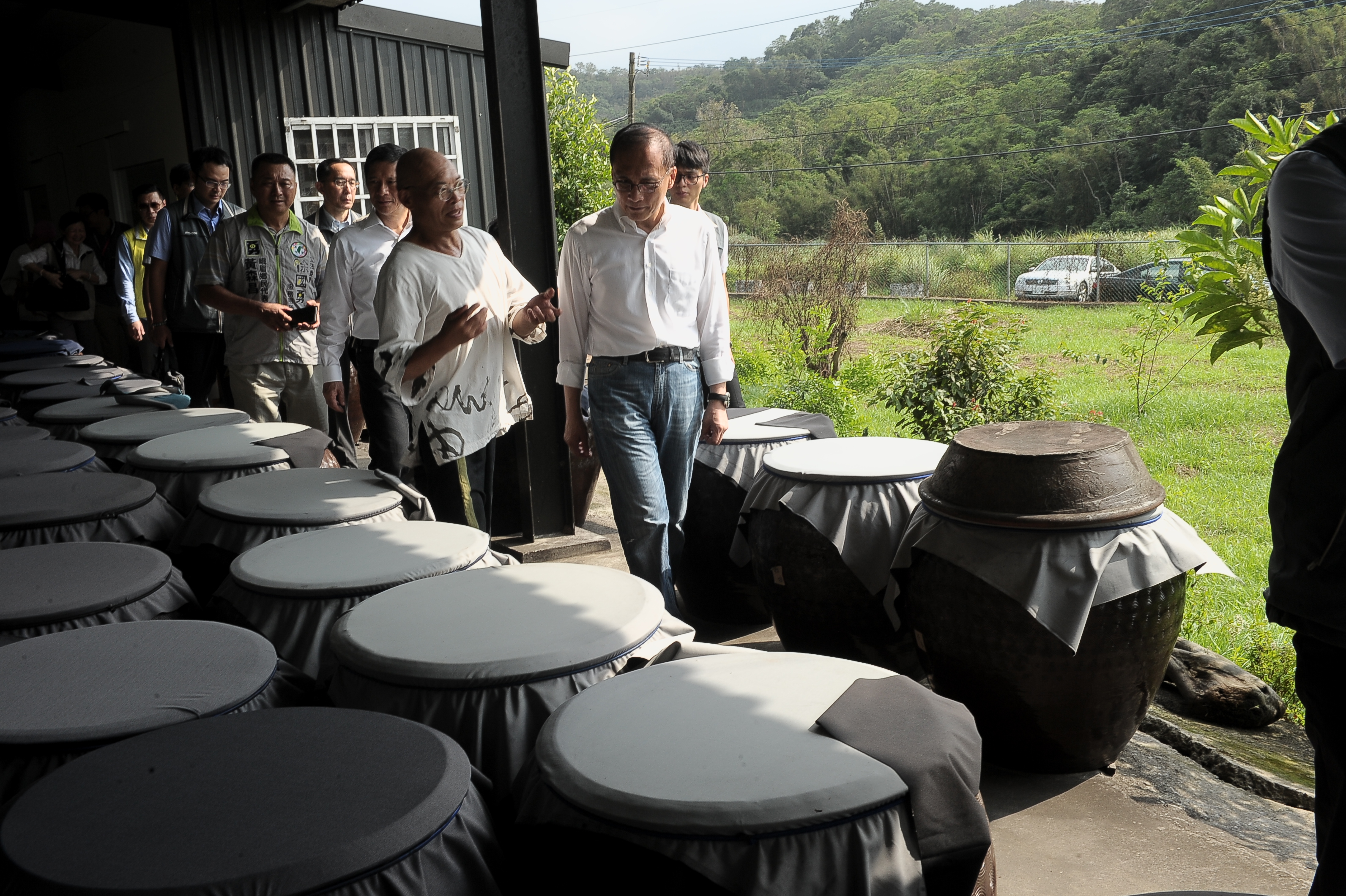 林院長參訪「賴唐鴉家庭美術館」時,除瞭解周邊環境復育情形外,也實地瞭解唐婆醋釀造過程,體驗洛神花醋DIY。林院長指出,賴唐鴉夫婦透過陶藝與釀醋的結合,成為地方產業經濟的特色,更表現出居民返鄉創業,為當地創造新生態的範例。