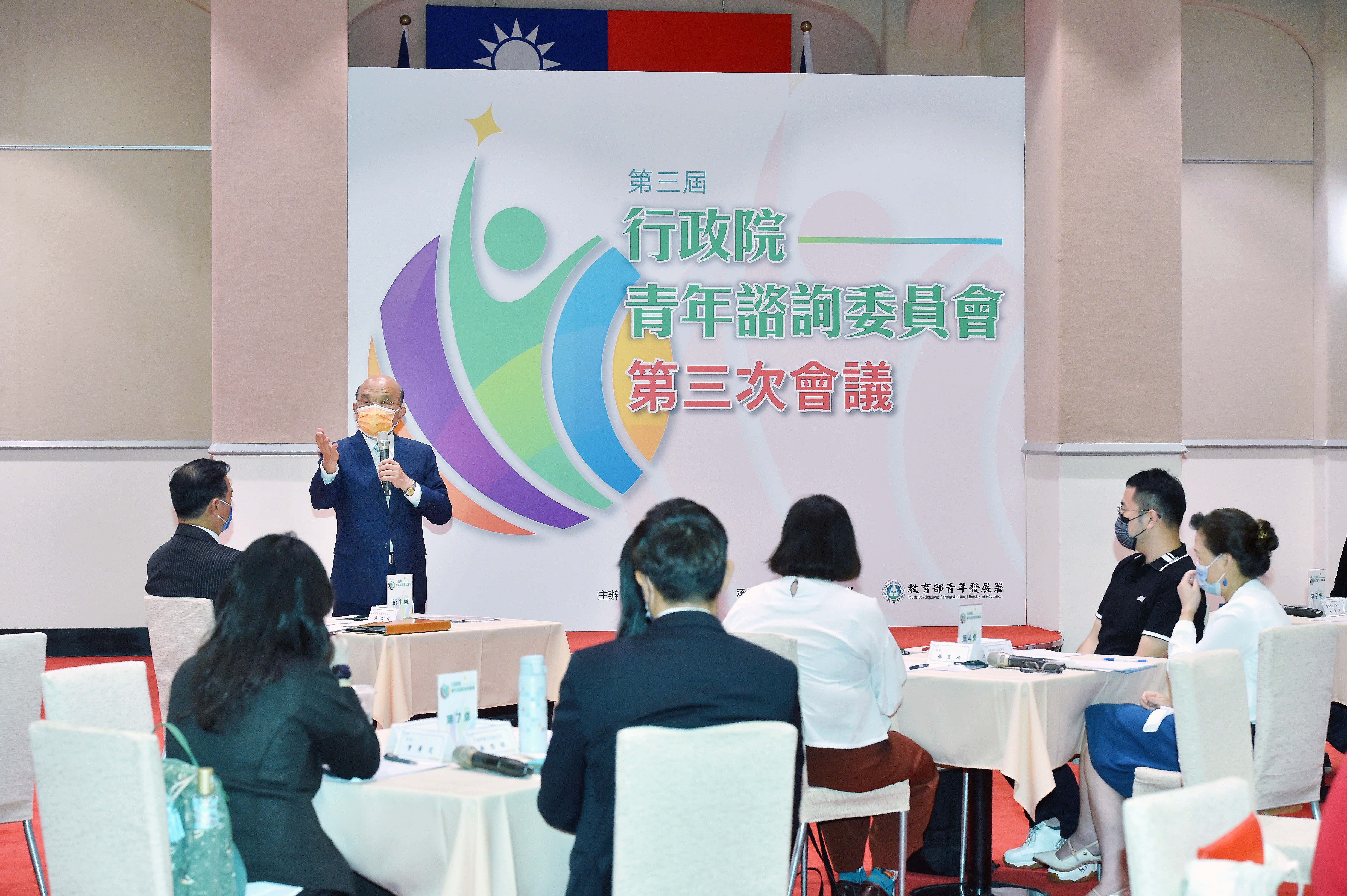 行政院長蘇貞昌今(10)日主持「行政院青年諮詢委員會」第3屆第3次會議時表示,在蔡英文總統領導下,政府持續朝「守住國家、照顧人民」的目標邁進,並以實際行動推動相關政策,戮力解決青年族群面臨的各種問題。在解決居住問題方面,除積極興建社會住宅並已推出擴大租金補貼專案計畫;在打造友善生養環境方面,除將育兒津貼提高至每月5,000元,降低6歲以下就托費用,並擴大不孕症治療補助,成功產下3,300多名新生兒;在教育方面,除落實「班班有冷氣」政策,下(9)月亦將優先推動偏鄉學校「中央廚房大帶小,熱騰騰午餐準時到」及「班班有網路、生生用平板」等政策;此外,18歲公民權修憲複決案也將在今(2022)年年底舉行,在在都展現政府有決心、有效率,戮力為青年解決問題,並拿出方法、做對的事。今日會中,院長也針對「研擬淨零目標下的各部會青年政策」及「研擬在臺外國人的創就業與好生活支持系統」等兩項討論案與委員進行意見交流,場面熱絡。