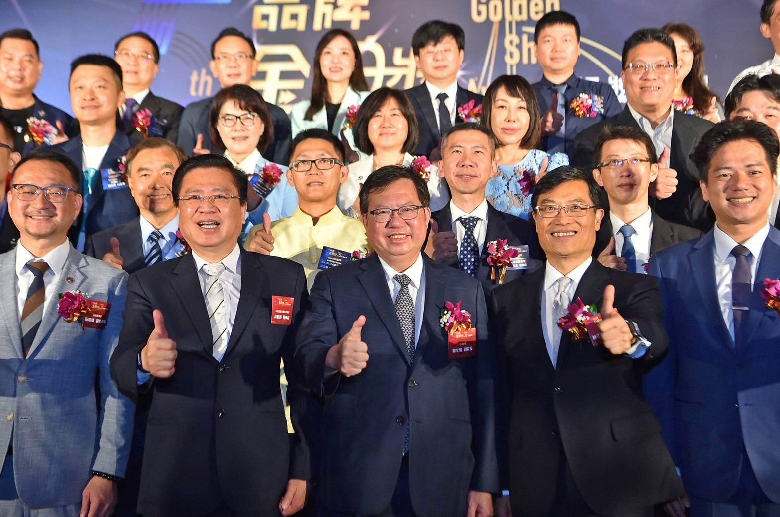 隨後,鄭副院長與經濟部次長陳正祺、僑務委員會副委員長阮昭雄、立法委員邱臣遠、財團法人中小企業信用保證基金董事長魏明谷、中華民國全國商業總會理事長許舒博及得獎廠商代表合影留念。