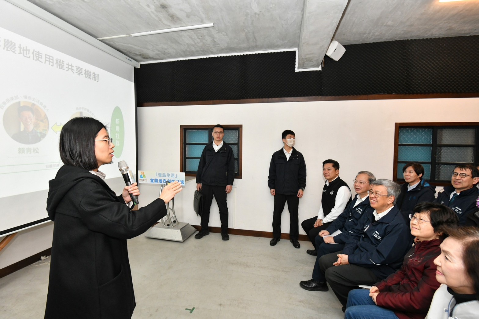 陳院長指出,今日訪視的慢島生活有限公司,即結合一群充滿愛心、智慧及勇氣的深溝小農與宜蘭在地文創青年,共同發起「深溝二代計畫」,期間雖歷經許多艱難,但團隊成員仍腳踏實地、一步一腳印地投入地方創生行動。而面對農地供給不穩定問題,該團隊也透過深具創意的「一坪土地計畫」,以集資購地方式保存農地、農地農用,讓嚮往田園夢的都市生活者,能夠實現鄉村歸農與貼近土地生活的夢想。
