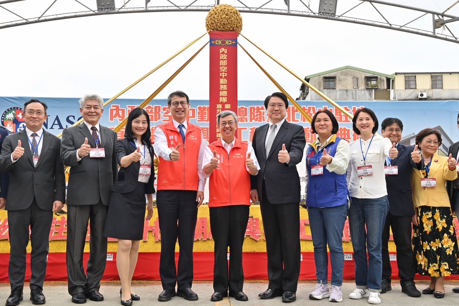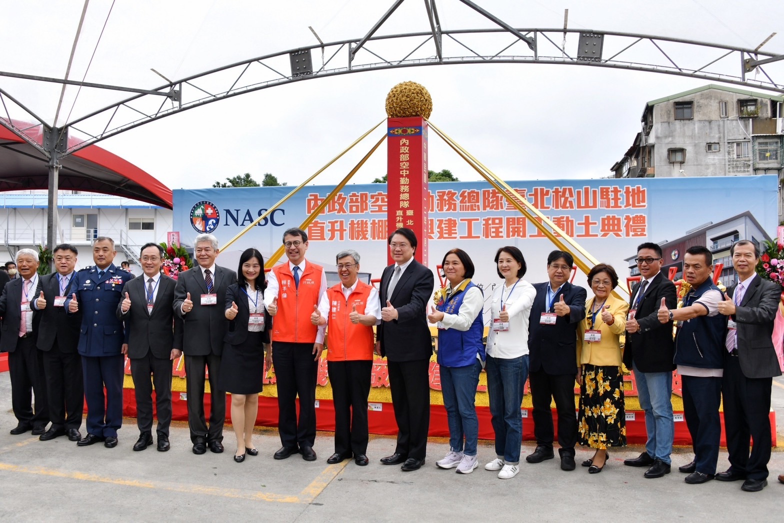 行政院長陳建仁今(27)日出席「內政部空中勤務總隊臺北松山駐地直升機棚廠興建工程開工動土典禮」時表示,行政院核定34億元中程計畫興建松山直升機棚廠,並由內政部及國防部跨部會合作推動,另也同步興建空勤總隊辦公廳舍與勤務隊備勤處所,提升兩部會於松山駐地的基礎設施,為我國整體救災戰力做更好的整備。院長祝福該工程如期、如質、如實順利完工,並期勉空勤同仁與共勤組員秉持「任務圓滿,安全第一」的理念,繼續提供國人更安全、更有效率的救援服務。