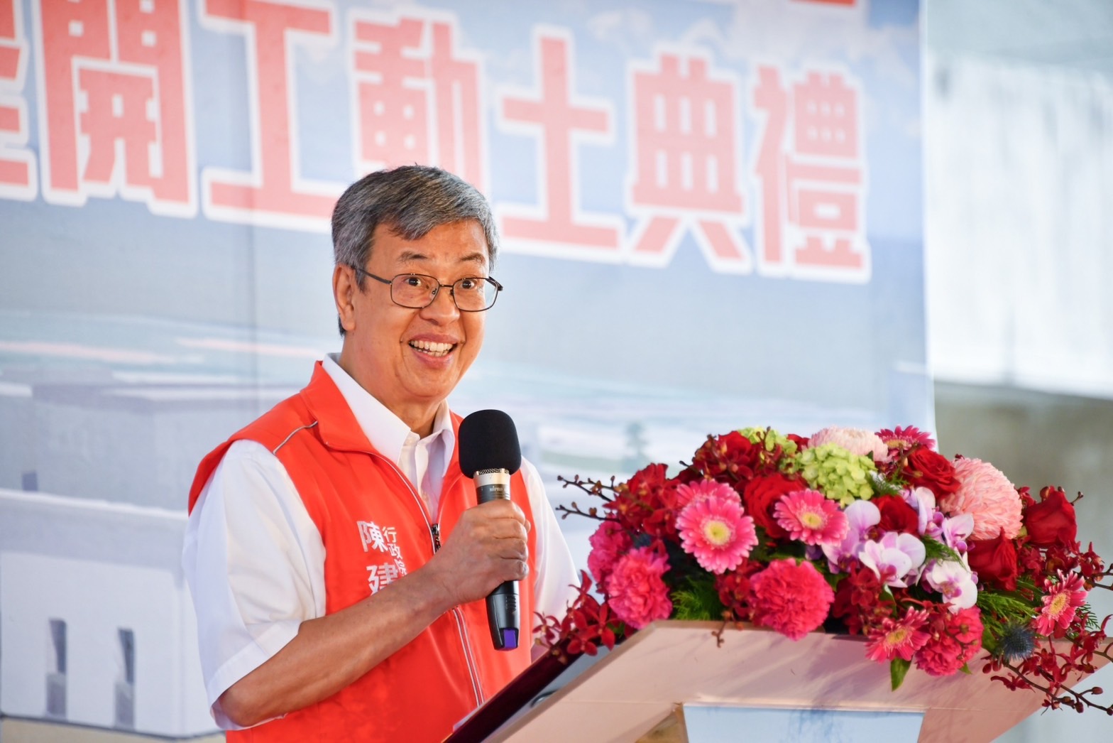 隨後,陳院長與行政院林子倫發言人、災害防救辦公室王怡文代理主任、內政部林右昌部長、國土管理署吳欣修署長、消防署李永福副署長、空中勤務總隊井延淵總隊長、國防部軍備局王德本副局長、空軍松山基地指揮部徐善治副指揮官、陳玉珍立委、王鴻薇立委等貴賓一同進行祈福祝禱儀式,執金鏟起鍬三鏟,完成動土儀式。