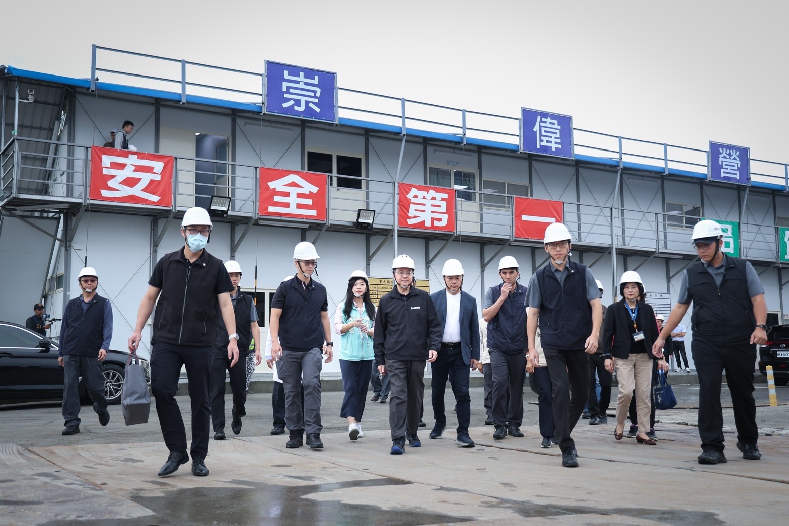 此行,卓院長抵達後,首先聽取陽明交通大學附設醫院楊純豪院長說明「陽明交通大學附設醫院第二期擴建計畫」簡報,瞭解本計畫設計核心理念,以及二期擴建計畫完工後對於提升急重症量能、擴大檢查量能與門診空間整合等效益。致詞結束後,卓院長偕同行政院龔明鑫秘書長、李慧芝發言人、教育部林騰蛟次長、衛生福利部林靜儀次長、陳俊宇立委、宜蘭縣林姿妙縣長、陽明交通大學林奇宏校長,以及設計監造單位劉培森建築師事務所劉培森建築師、施工廠商崇偉營造公司潘谷聲總裁等進行現地視察,瞭解二期醫療大樓與職務宿舍興建位置、施作進度、減少土方外運量減碳工法及降低施工影響周邊安寧等友善作為。