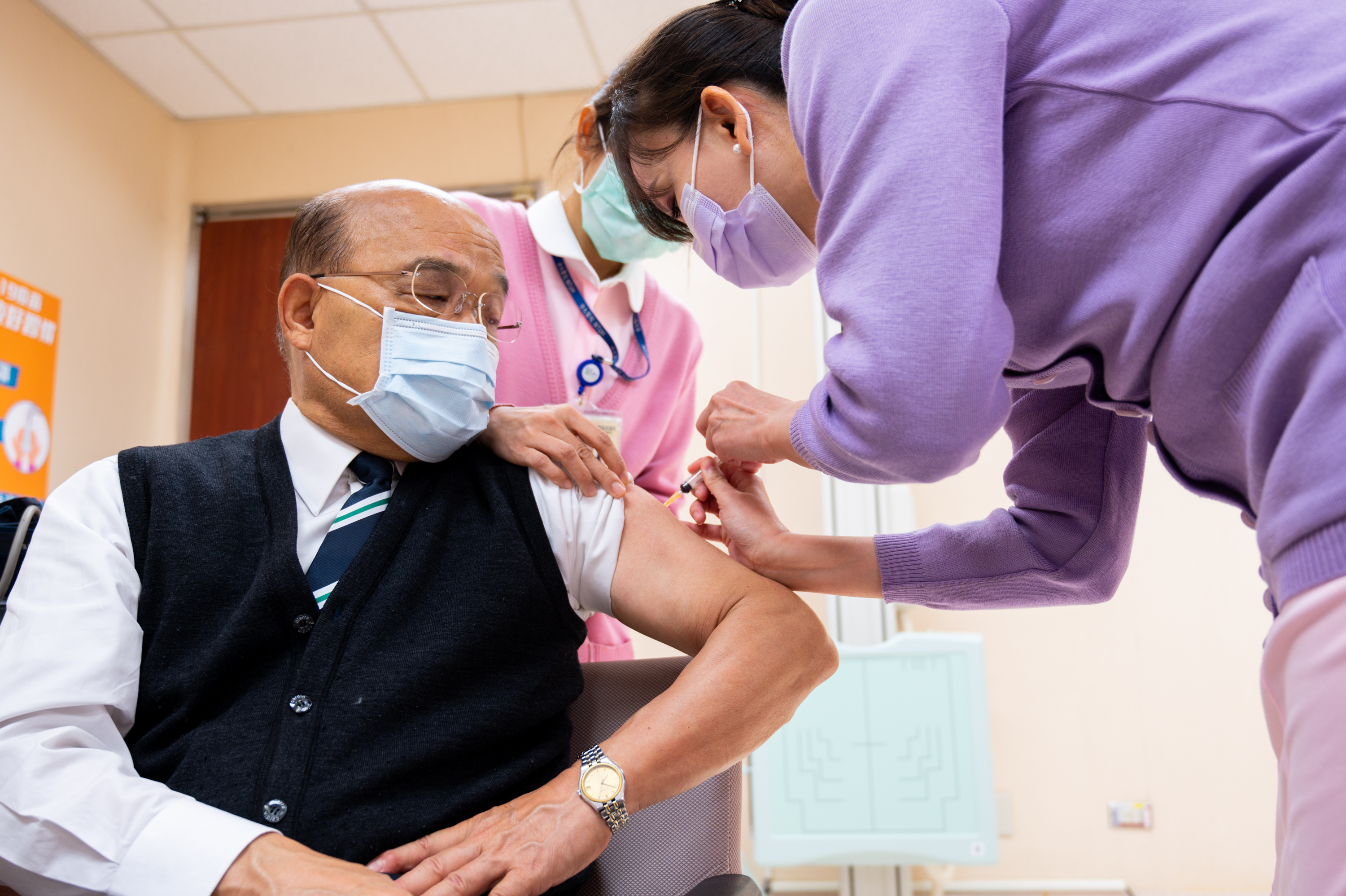 全國醫護人員今日起開始施打COVID-19(武漢肺炎)AZ(AstraZeneca)疫苗,行政院長蘇貞昌今(22)日一早前往臺北市臺大醫院帶頭施打。院長在施打完疫苗後表示身體沒有任何不適,強調政府進口的疫苗皆經過安全檢驗,請國人安心。未來政府對於疫苗將秉持國內研發、國外採購雙軌並行,以保護國人安全,請國人放心。