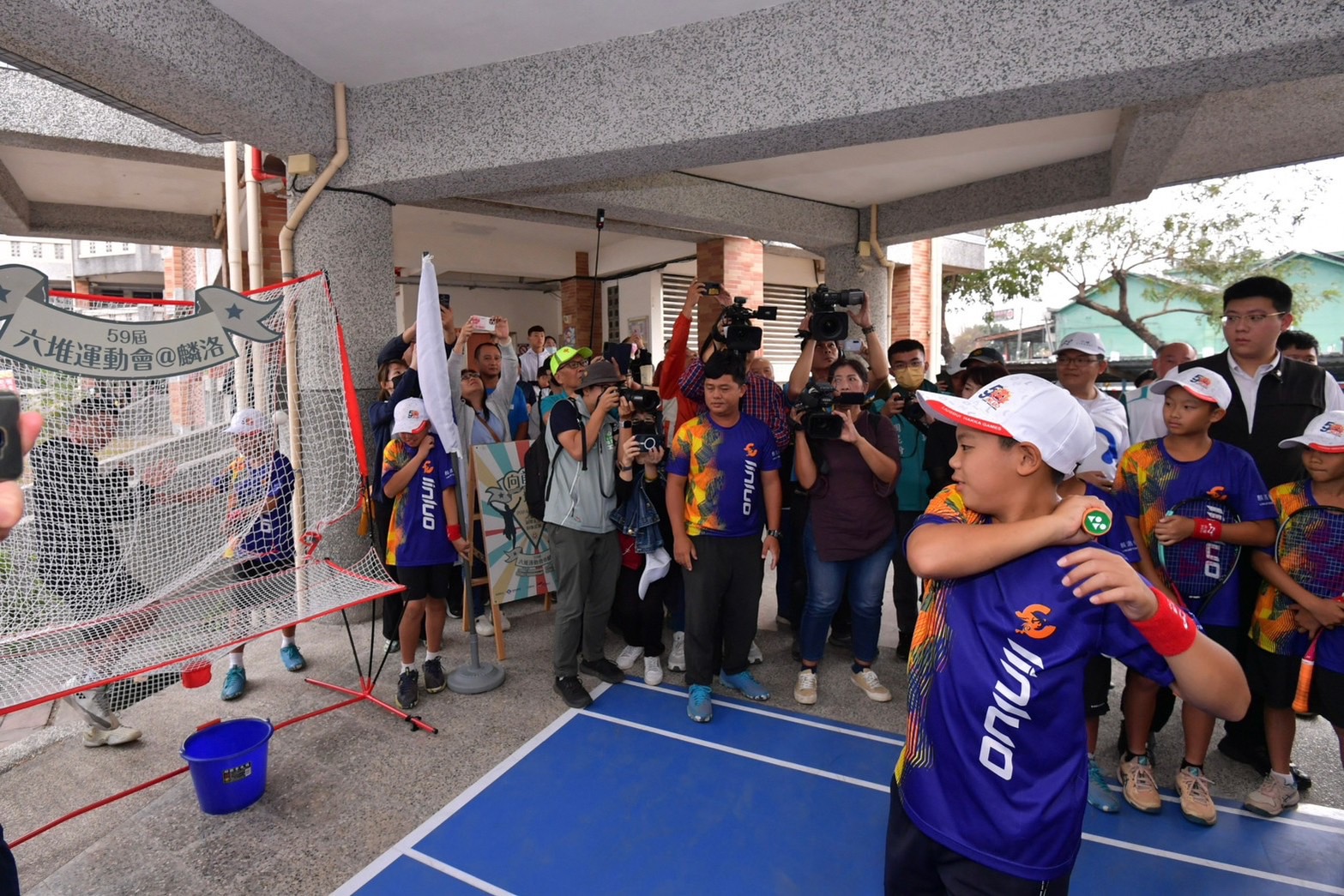 陳院長表示,2019年他擔任副總統時,曾受邀參加由後堆(內埔)主辦的「第54屆六堆運動會」開幕式,今日很高興再次參加,並欣見該運動會規模愈辦愈大,不斷與時俱進,本屆運動會不但有「軟式網球」和「桌球」的專業選手參與,也加入「霹靂舞」及「攀岩」等奧運項目,還有小小朋友的「幼兒滑步車」比賽。