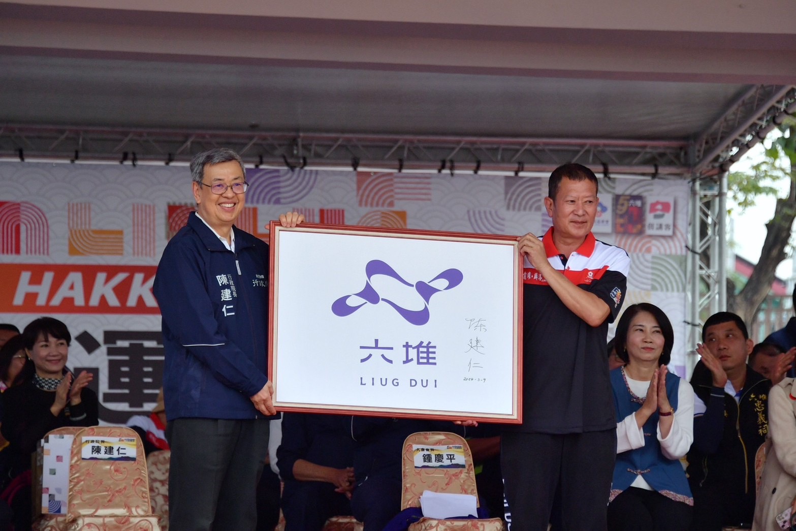 陳院長表示,蔡英文總統是屏東楓港的客家人,自上任後,即非常重視客家的發展,行政院也從法規、制度、預算到政策,逐步規劃並落實。例如,2019年起,客家委員會將「臺三線客庄浪漫大道治理平台」,陸續擴大到六堆和台九線,並於2021年成立「客庄369專案辦公室」,用心耕耘客家特色產業及觀光經濟;行政院也核定超過18億元,補助高屏六堆地區改善「龍頸溪水岸環境」、興建「六堆紀念公園」、打造「非營利幼兒園客語沉浸空間」,以及修繕美濃「邱義生家族夥房」與萬巒「五溝水聚落」祖堂等客家紀念空間。