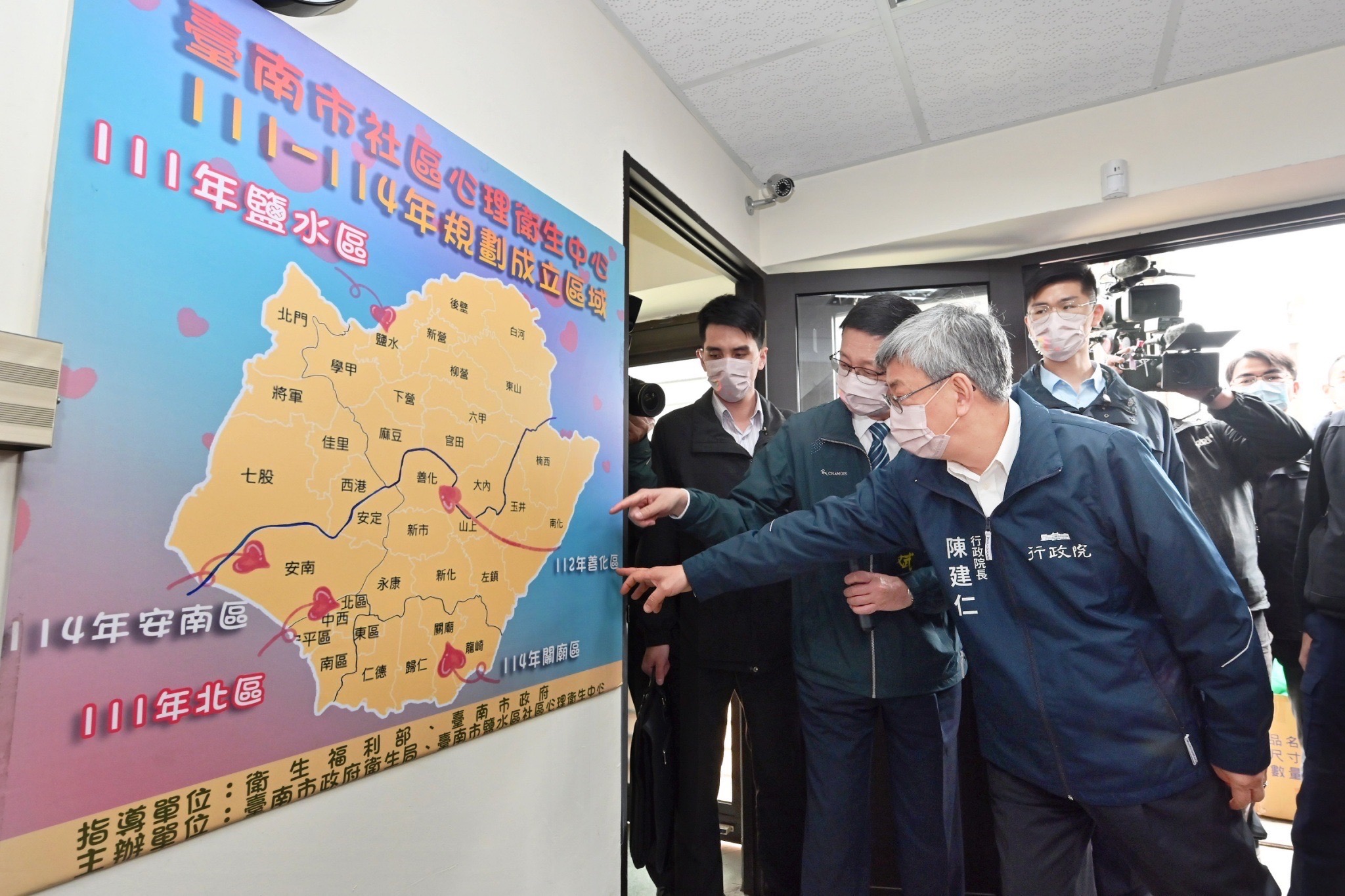 行政院長陳建仁今(21)日視察臺南市鹽水區社區心理衛生中心時表示,中央與臺南市政府共同合作,透過該中心強化社會安全網,提升民眾對於精神病友的關懷、體貼與接納。陳院長表示,蔡英文總統非常重視社會安全網的建構,政府也已陸續核定第一期及第二期「強化社會安全網計畫」,並挹注大量預算及資源,積極布建社區心理衛生中心、擴充服務人力及物力,同時亦透過「以家庭為中心、以社區為基礎」的服務模式,將點擴散至整個面,提供需要精神衛生照顧的民眾一處方便、在地的社區照顧。
