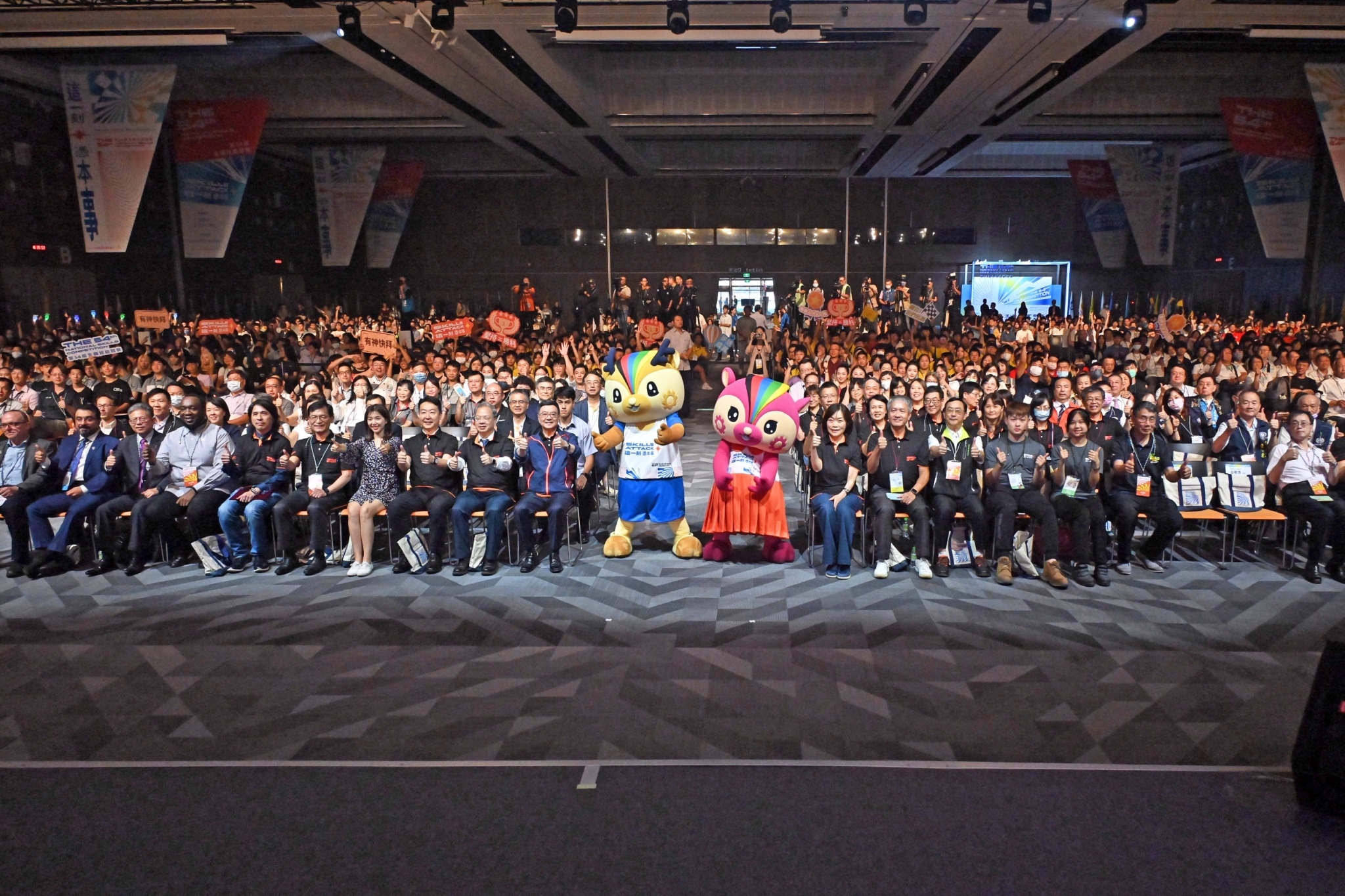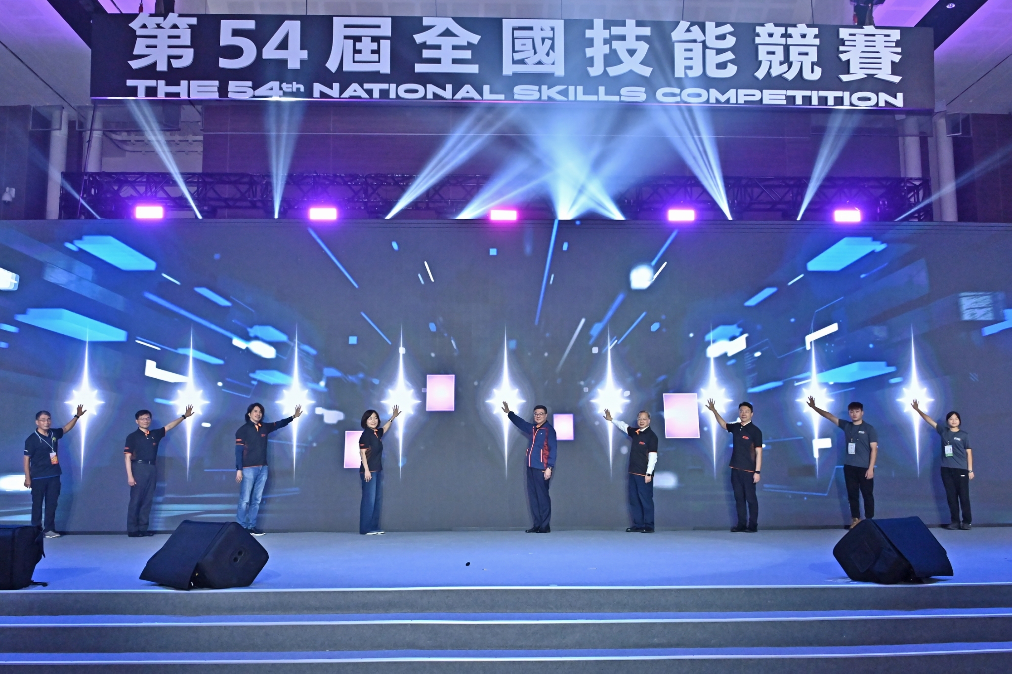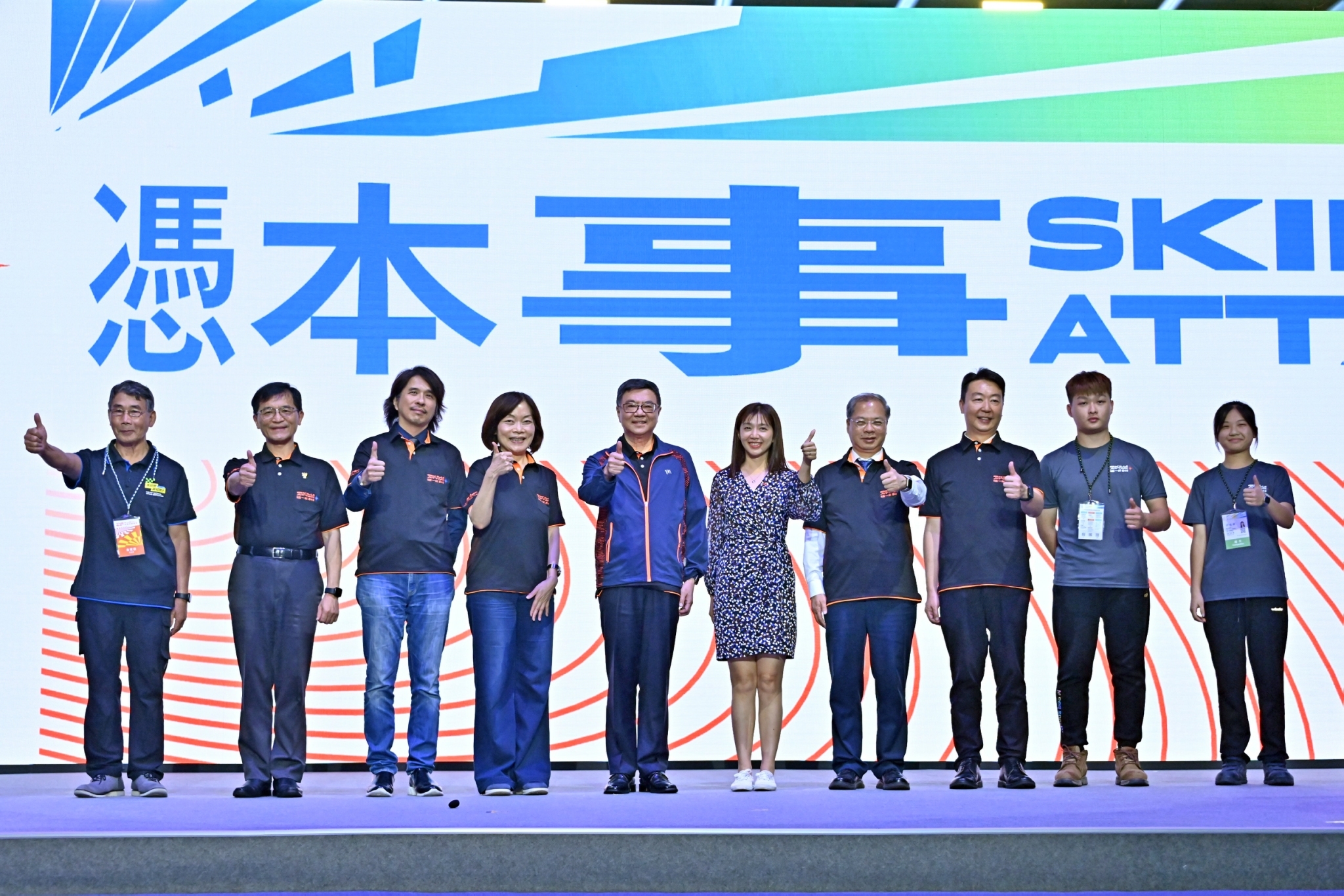 卓院長到場後,與現場所有選手一同合影,並欣賞「這ㄧ刻 憑本事」形象影片、開幕主題曲及熱舞表演。致詞結束後,由家具木工職類朱昱安選手及汽車噴漆職類余佩蓁選手帶領全體選手宣讀誓詞,卓院長則於舞臺上監誓;隨後,卓院長、行政院龔明鑫秘書長、陳世凱發言人、勞動部何佩珊部長、教育部葉丙成次長、經濟部何晉滄次長、總裁判長侯世光教授與選手代表以手掌觸碰背板螢幕方式,播放啟動動畫,並一同在舞臺上比讚及握拳,為選手們加油打氣。