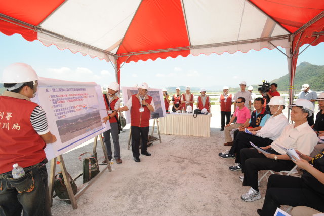 吳院長並前往旗山視察旗山溪疏濬工程及高雄杉林月眉慈濟大愛園區,並致贈園區內住戶文旦禮盒祝賀中秋佳節愉快。