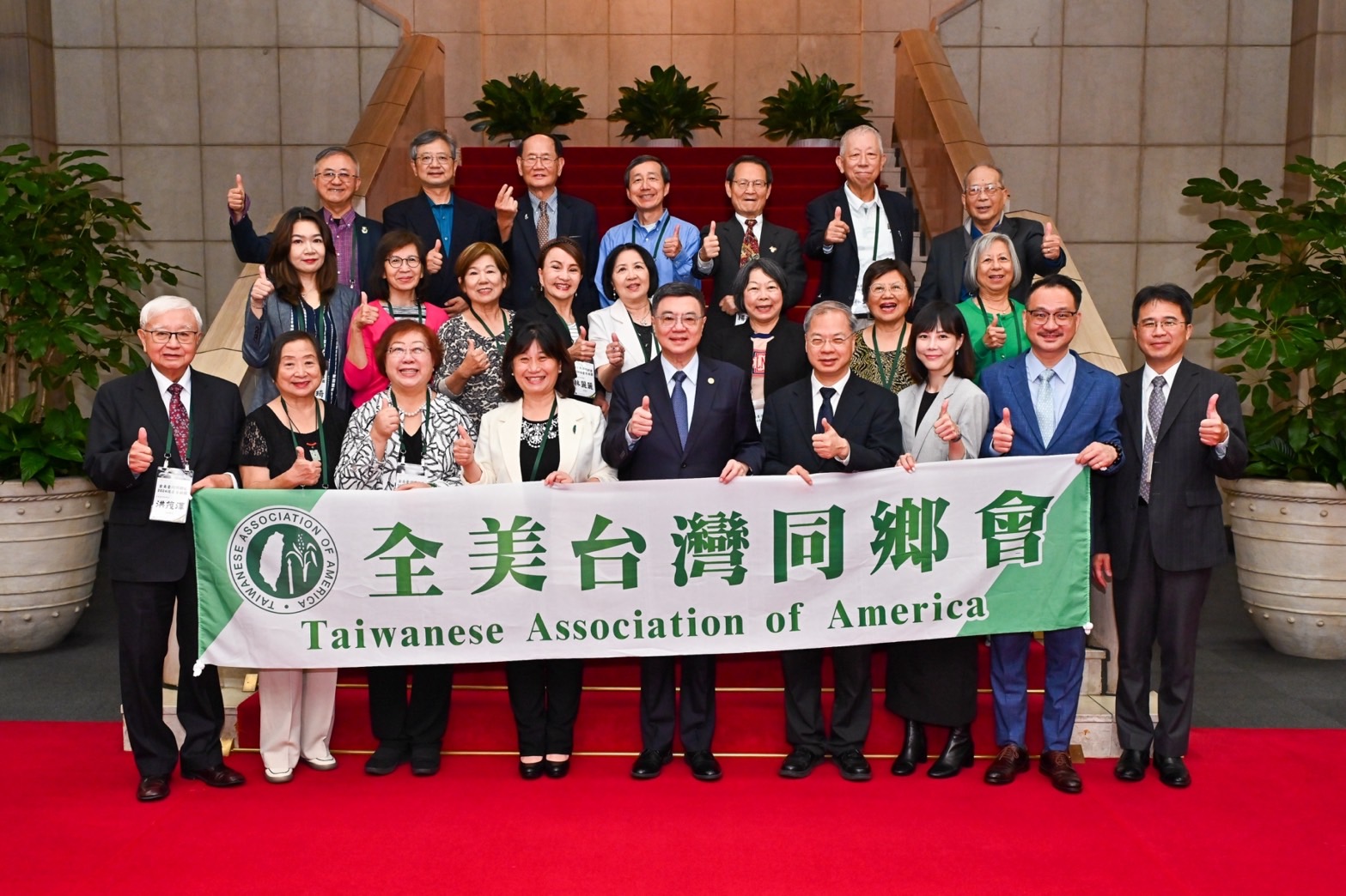 訪賓一行尚包括全美台灣同鄉會返台參訪團宋明麗副總團長、梁婷行政總監等33人,由僑務委員會阮昭雄副委員長陪同,前來行政院拜會卓院長,行政院龔明鑫秘書長及李慧芝發言人也在座。
