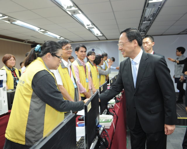 江院長指出,目前國內人口約2,300萬人,具有投票權的選民約1,800多萬人,佔總人口將近四分之三,今天的選舉是臺灣有史以來規模最大的一次,也是地方制度法修正後,第一次將所有地方公職人員選舉合併在同日舉行,因此選務工作特別繁重辛苦。對於中選會、各部會支援同仁、維持投開票所秩序的警察同仁,以及學校教職員等所有選務工作人員,在這段期間全力投入選務工作,表達由衷的感謝。