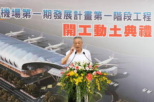 行政院長吳敦義今(24)日出席中部國際機場第一期發展計畫第一階段工程開工動土典禮時強調,馬總統就任後即推動兩岸直航及陸客來台觀光,日後中部國際機場在客、貨運量將會大幅提升,尤其今年12月25日台中縣、市合併之後,中部國際機場更顯重要,前景無可限量。