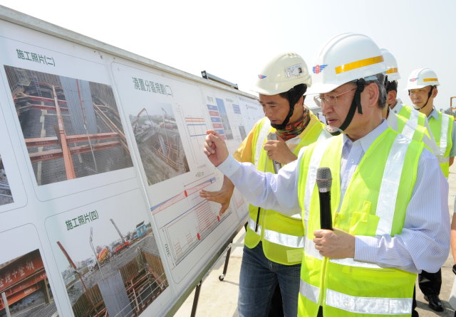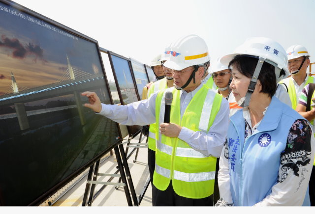 毛院長指出,今日勘查的是該路段「WH50-2標跨越後港溪脊背橋工程」,該橋梁未來完工後結合夜間光雕,將會是一座漂亮的橋梁,該路段除此標案外,公路總局也正在進行其他2項標案,毛揆除為施工團隊打氣期勉工程順利進行外,也感謝彰化縣政府的配合。
