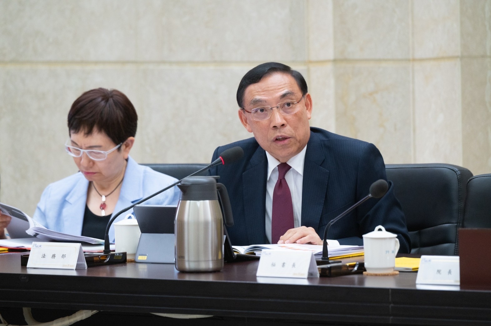 另有關法務部「新興濫用物質、毒品先驅原料管制策進作為」一案,陳院長表示,本案相關策進作為已有精進,但鑒於毒品製造途徑五花八門,且部分化學原料恐淪為製毒先驅原料,請法務部可參酌外國作法,成立專責小組進行成癮藥物監控,密切關注各國毒品發展;亦可研議邀集化學或藥物等領域專業人士,協助政府超前分析,列管先驅化學品工業原料,以完善政府毒品防制機制。
