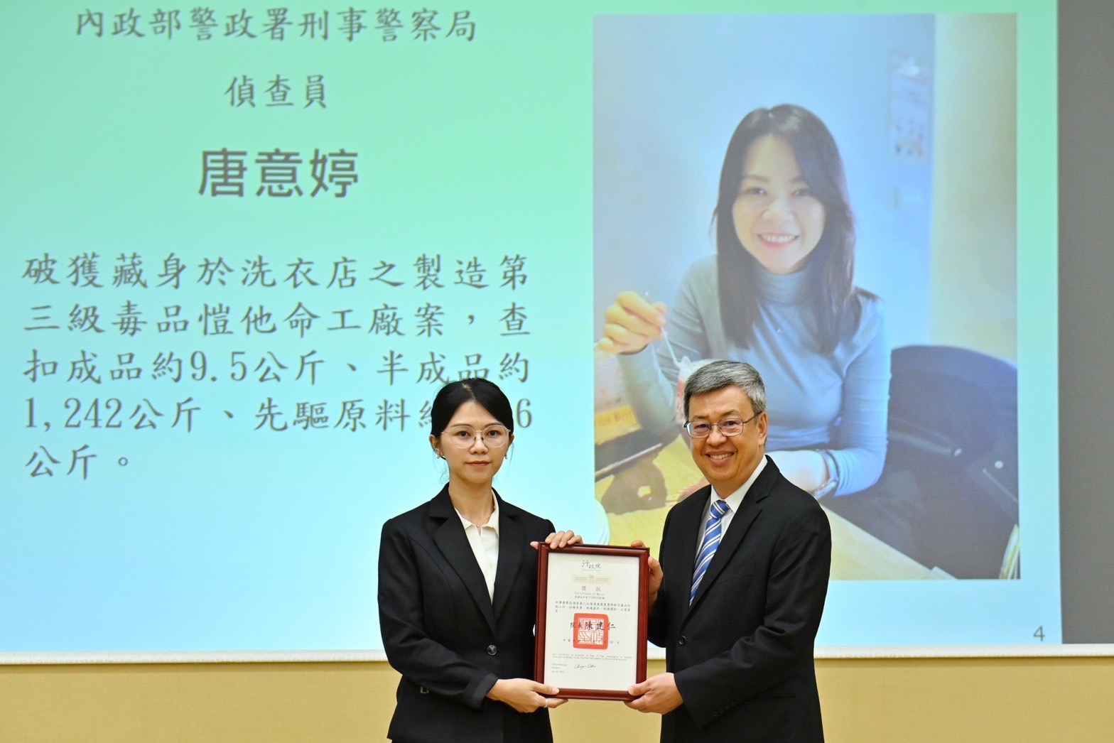 陳院長強調,毒品被國人深惡痛絕,毒品防制是政府當前工作的重中之重,然而緝毒過程極其艱辛,請各緝毒機關首長、單位主管多加勉勵第一線緝毒人員,提振同仁士氣;各機關也應相互合作、整合情資、發揮戰力,聯手打好反毒的戰鬥。