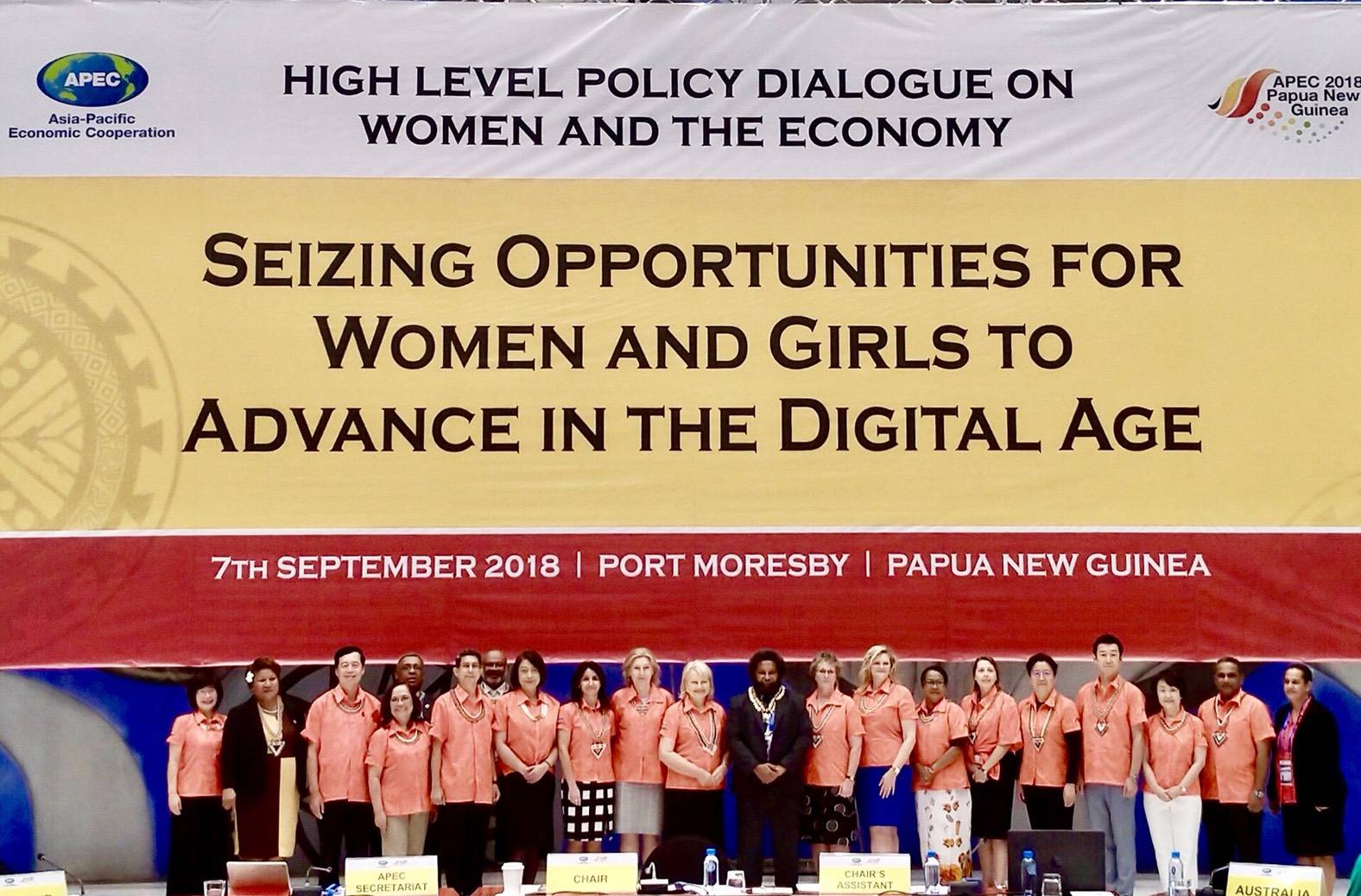 行政院性別平等處表示,在「高階政策對話會議」(High Level Policy Dialogue, HLPD),PPWE主席Mr. Fredrick Tamarua提及我國呼應本年APEC優先主題「包容性」與「數位發展」的APEC智慧農業性別化創新計畫(APEC GIFTS A+)。另APEC秘書處主任Ms. Irene Sim接續介紹我國與美國、澳洲、日本等經濟體捐贈成立的婦女與經濟子基金,促進跨論壇合作融入性別觀點的計畫。