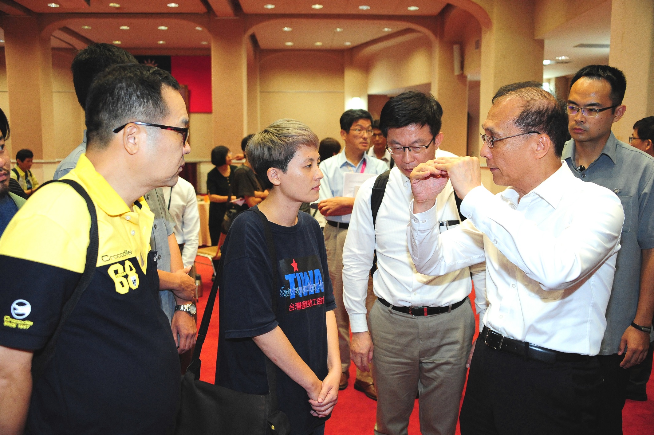 今日出席的團體代表,勞工領域的有全國產業總工會理事長莊爵安、全國工人總工會理事長張家銘、桃園市產業總工會理事長莊福凱、高雄市產業總工會總幹事葉品言、臺灣勞工陣線秘書長孫友聯、臺灣國際勞工協會秘書長陳秀蓮;環保領域的有地球公民基金會執行長李根政及副執行長王敏玲、彰化縣環境保護聯盟總幹事施月英及執行秘書吳慧君、環境法律人協會理事長張譽尹及秘書長林仁惠;居住社宅領域的有都市更新受害者聯盟研究員陳虹穎、崔媽媽基金會執行長呂秉怡、房市改革行動聯盟召集人彭建文、建築改革社社長曾光宗、臺灣社會福利總盟理事長陳節如、臺灣社區居住與獨立生活聯盟理事長陳美鈴;農業領域的臺灣水資源環保聯盟發言人陳椒華、主婦聯盟生活消費合作社理事主席許秀嬌、臺大公衞學院副院長詹長權、綠色公民行動聯盟副秘書長洪申翰、臺灣農村陣線副秘書長陳平軒等共計23人。(撰稿:黃宇萱,電話:02-23410648)