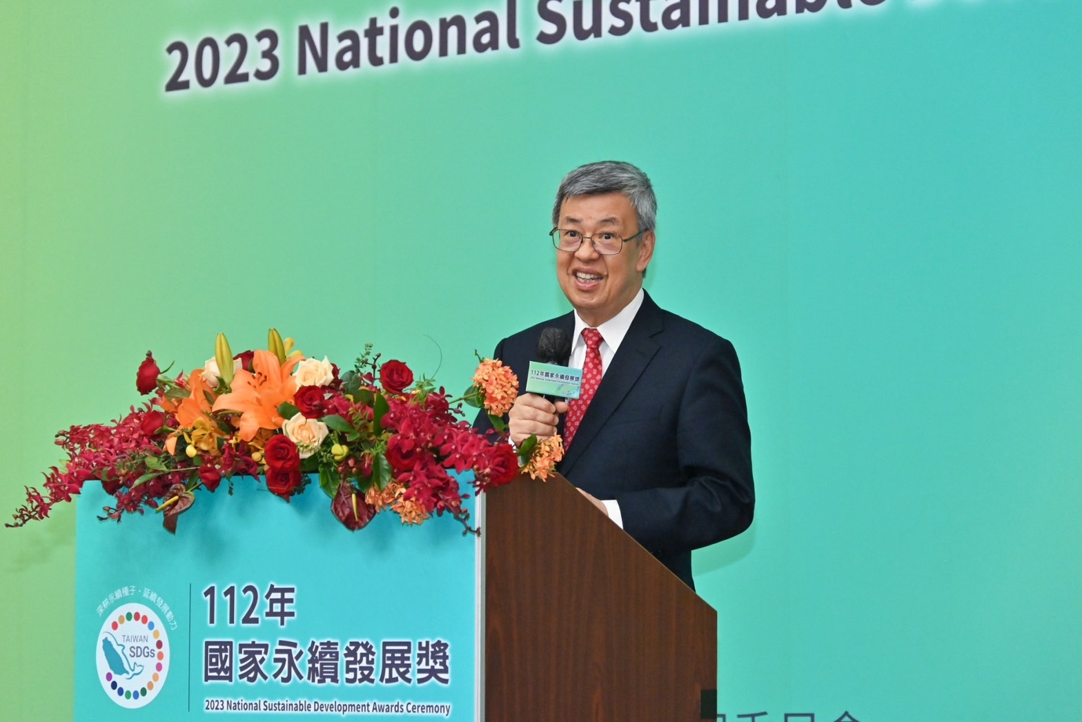 行政院長陳建仁今(30)日出席國家永續發展獎頒獎典禮,頒獎表揚35個對臺灣永續發展有實質貢獻的獲獎單位。院長表示,蔡英文總統上任以來,積極推動能源轉型等永續發展策略,並於去(2022)年3月正式公布「臺灣2050淨零排放路徑」及「十二項關鍵戰略行動計畫」,設立2030年階段性目標。而我國再生能源發電量目前已超過核電,且發電所造成的空氣污染也減少61%。院長感謝眾人共同發揮力量,讓臺灣在永續發展的道路上獲致豐碩成果,期盼各界持續團結一致,一步一步穩健踏實地朝「永續發展」的目標邁進。