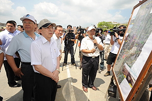 行政院長劉兆玄今(1)日赴高雄縣旗山鎮視察溪州排水疏通、旗山溪疏濬及堤防加高工程,在聽取水利署簡報後裁示,旗山溪的疏濬工作由中央負責執行,一定要在明年汛期來臨前限期完成,另外,旗山堤防加高工程,雖然該堤防經高雄縣定為古蹟,如果堤防加高工程和文化古蹟相牴觸,應提到重建委員會研議,一定要以人民生命財產為優先,並盡可能兼顧文化的需求。