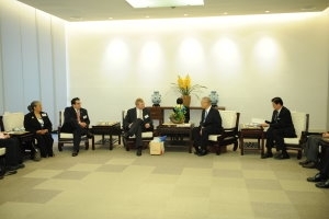吳院長並與該訪問團人員針對兩岸政策及簽訂兩岸經濟協議(ECFA)交換意見。吳院長指出,兩岸和平發展有助於建立兩岸協商管道,目前台灣的出口額每100元有41元在中國大陸,有12元在東協包括馬來西亞、新加坡、印尼、越南等國家,東協與中國大陸簽訂區域合作協定,就是所謂的東協加一,彼此關稅將會逐步降低,最後會變成零,如果台灣不與中國大陸簽ECFA,台灣產業將面臨出口課稅失去競爭力的威脅。