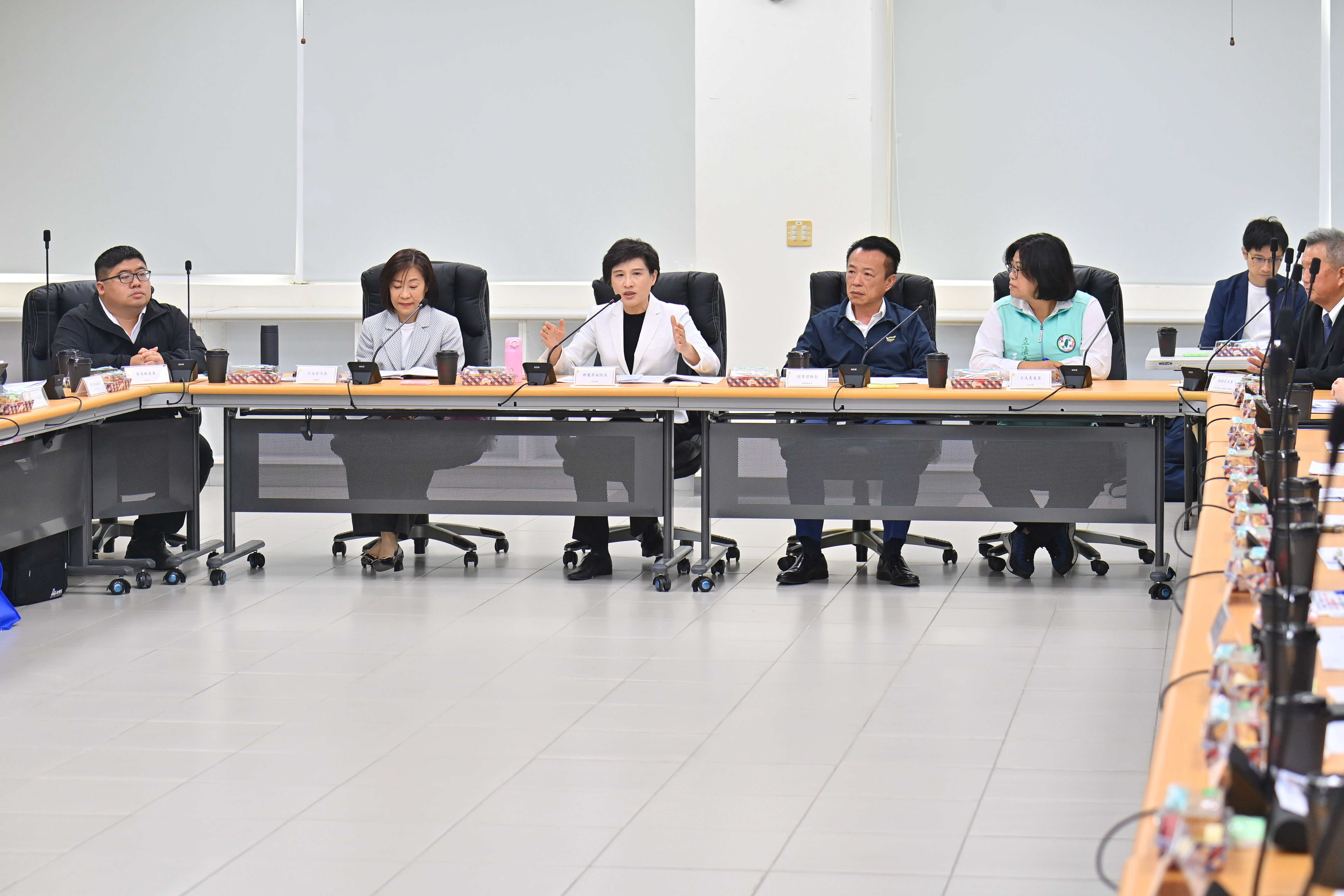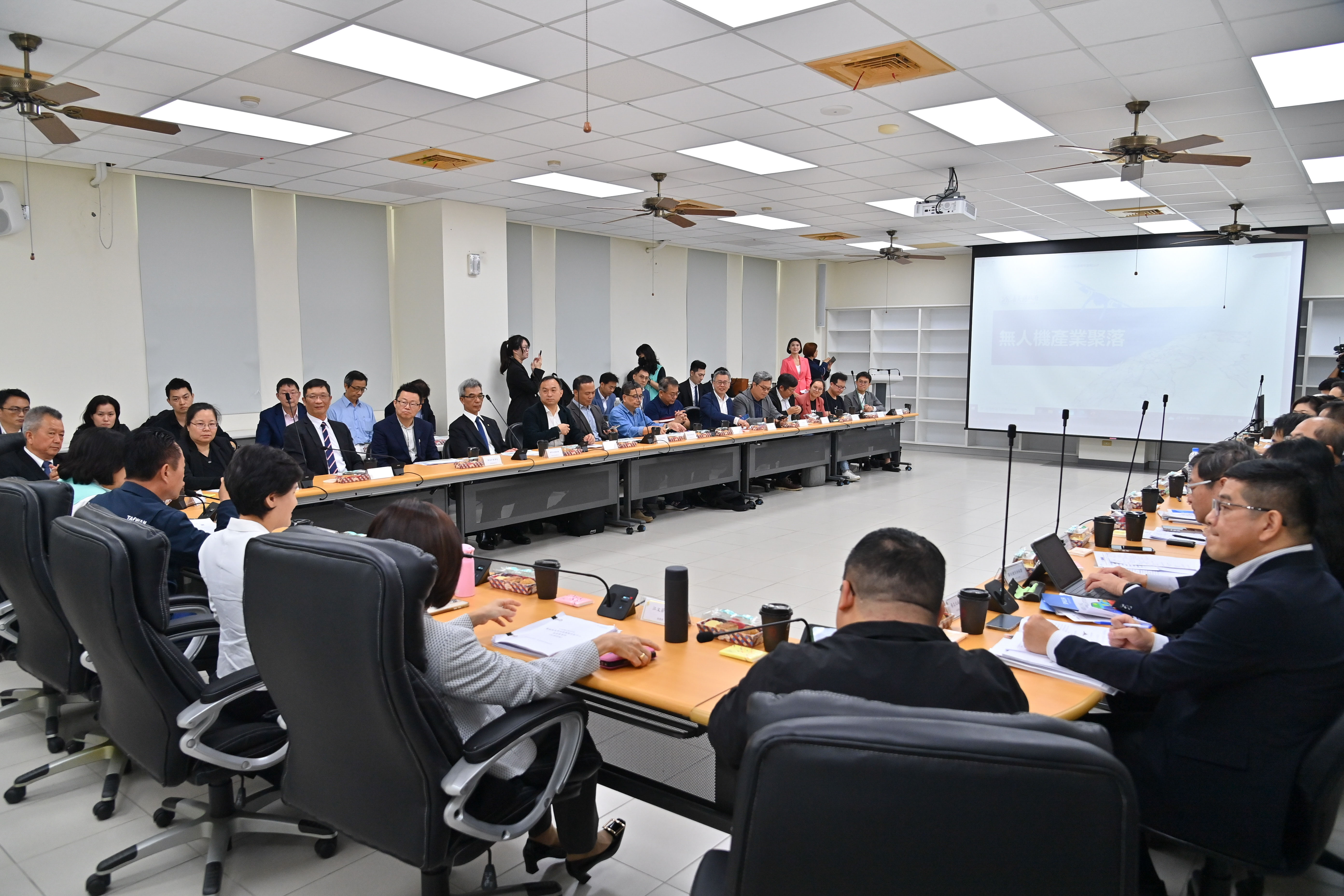 鄭副院長今日參訪亞創中心,與超過20家無人機業者交流座談,嘉義縣翁章梁縣長、立法院蔡易餘委員、王美惠委員也出席座談。會中依序由嘉義縣政府經濟發展處及經濟部產業發展署進行報告,無人機廠商提供多項建言,副院長逐一給予回應。會後鄭副院長在翁縣長等與會貴賓陪同下,前往無人機靜態展示區參觀,並聽取廠商介紹。