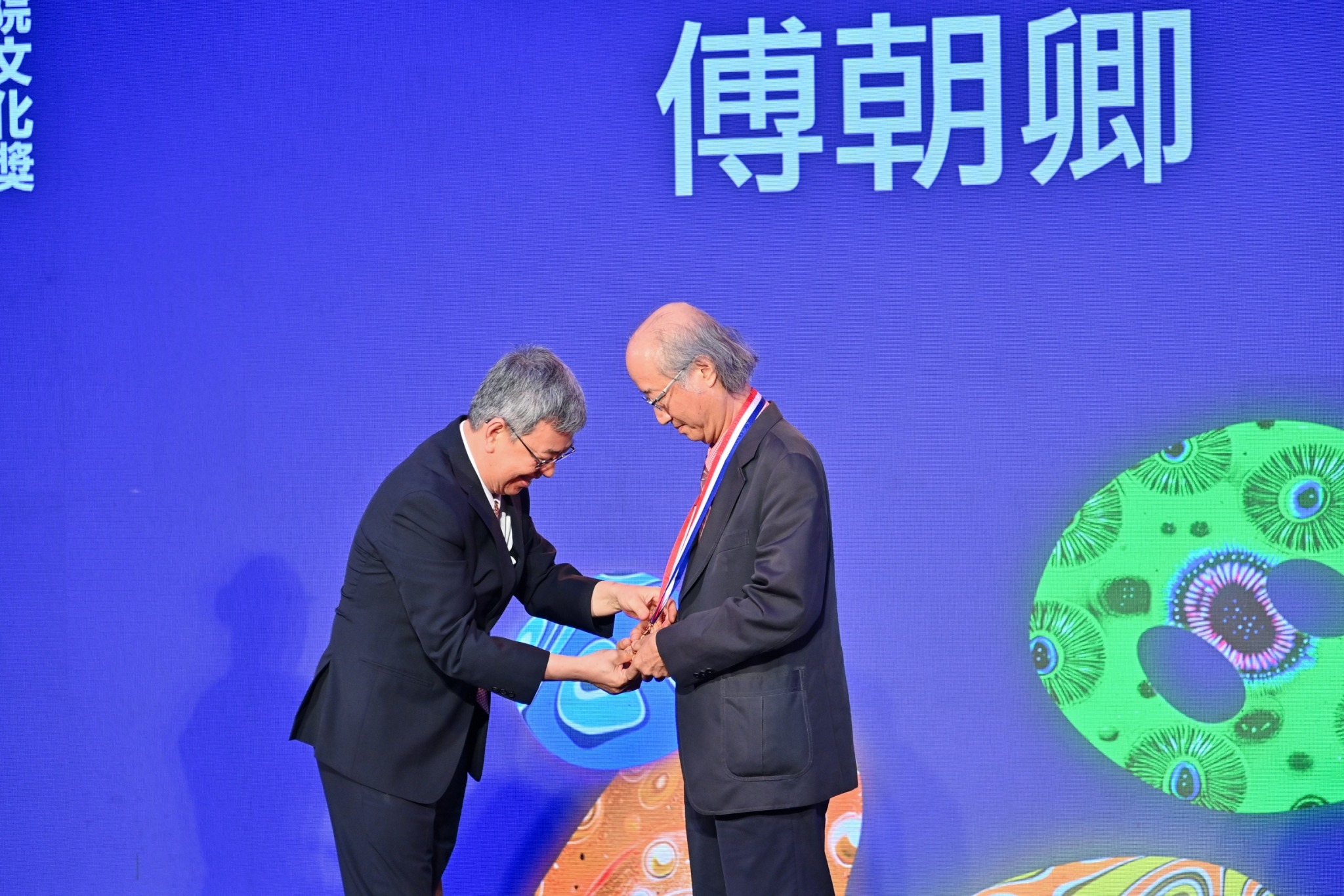 陳院長進一步表示,「文化資產領域」得獎人傅朝卿先生,是臺灣建築歷史與文化資產的守護者,長年致力於臺灣建築史、建築文化資產的調查、保存與推廣等工作,並引入國際新思維,積極向社會大眾推廣建築文化與文化遺產的保存觀念,對臺灣文化資產領域帶來深遠影響,同時亦積極推動臺灣文資保存工作,與國際接軌,殊值肯定。