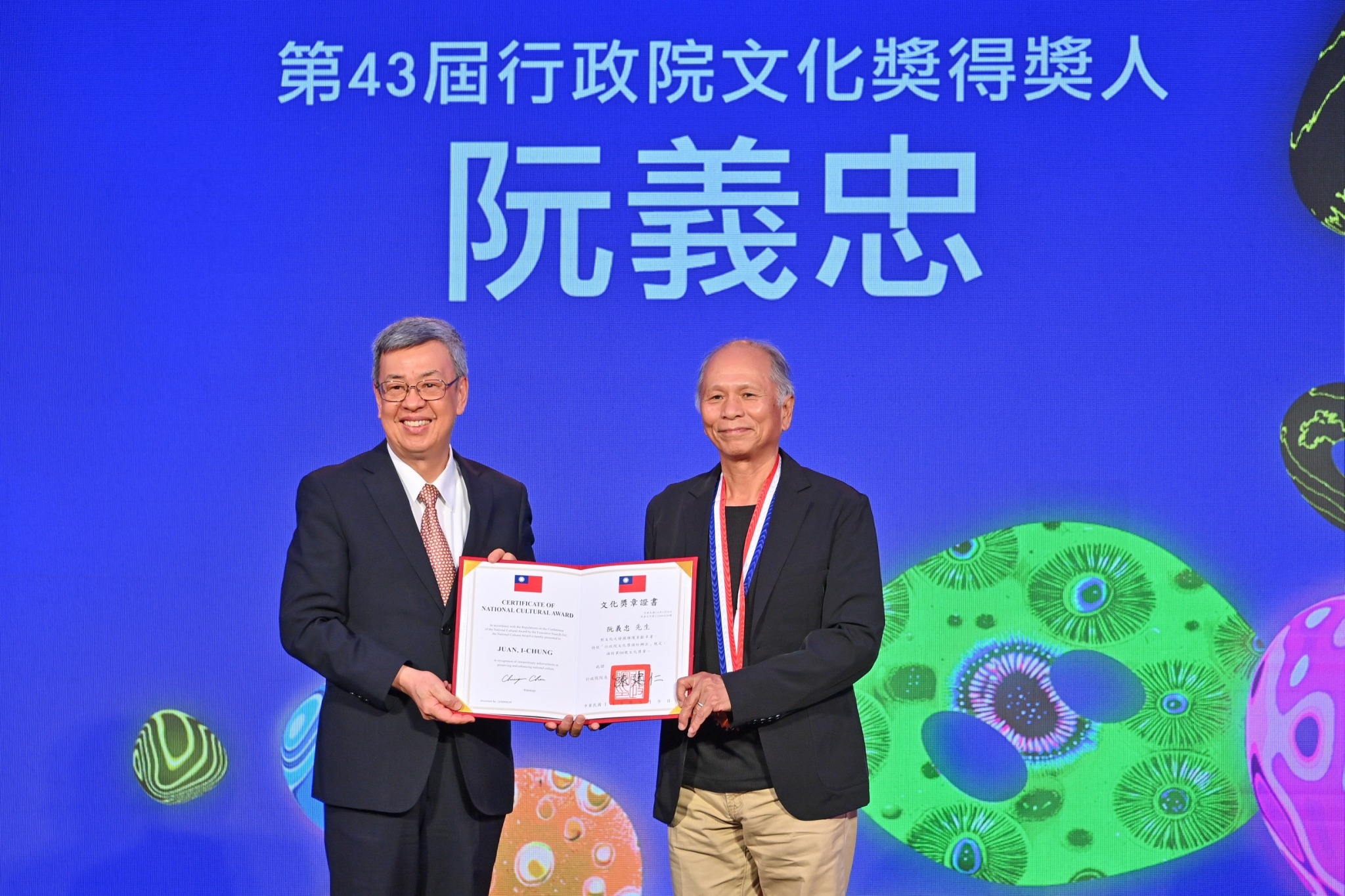 行政院長陳建仁今(9)日出席「第43屆行政院文化獎頒獎典禮」,除祝賀傅朝卿、阮義忠與林亨泰等三位大師獲獎外,也期勉文化工作者以文化前輩為榜樣,為臺灣文化貢獻力量。院長強調,政府持續積極營造良好的文化藝術發展環境,並投入龐大經費推動「黑潮計畫」、「歷史與文化資產維護發展(第五期)計畫」、「國家漫畫博物館」與「擴大編列成年禮金」等計畫,至盼臺灣社會更加親近與認識臺灣文化,重視文化事業的發展,支持並響應各種文化活動,為臺灣文化發展注入活水,進而將臺灣文化推廣至全世界。