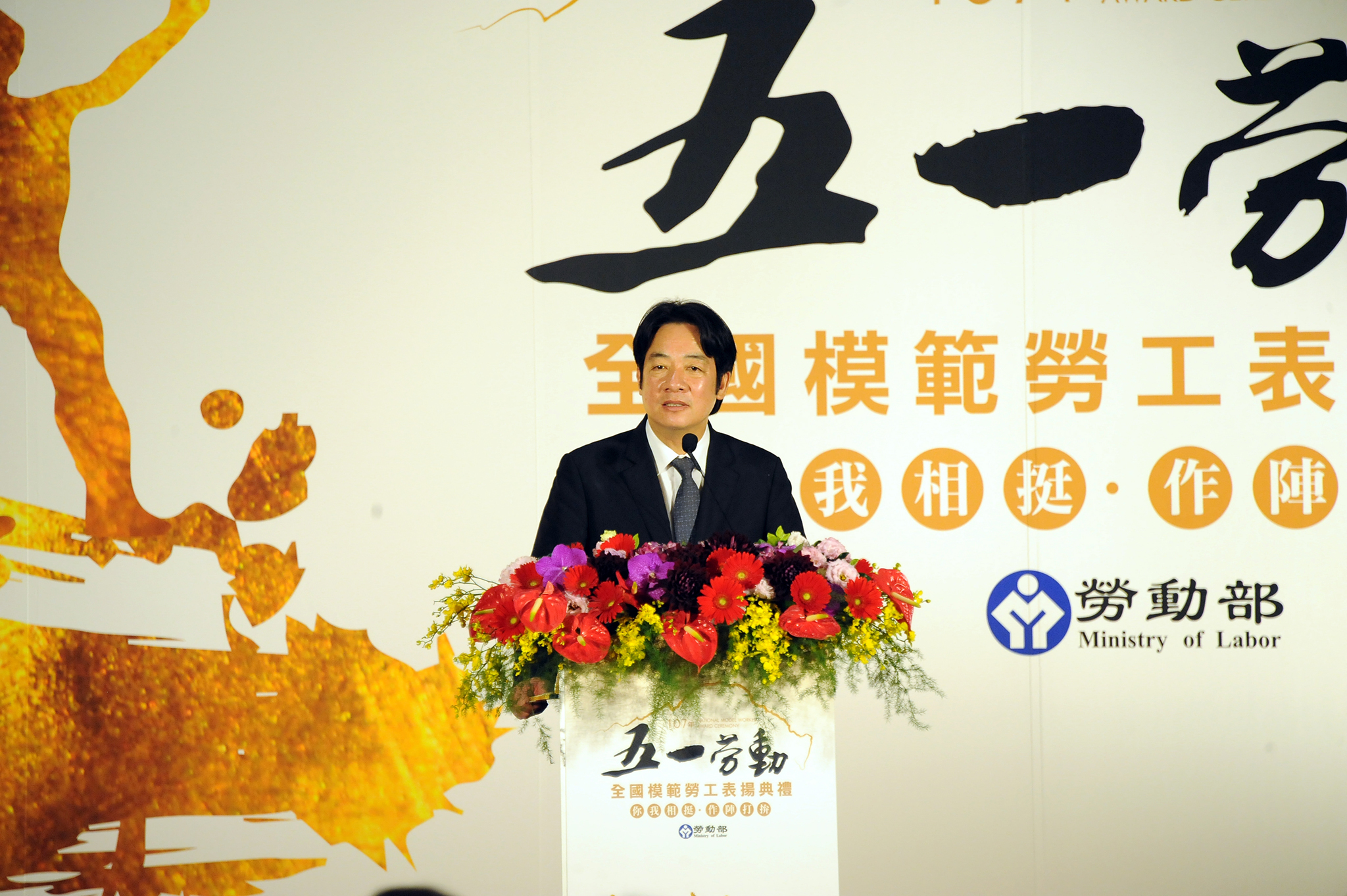 行政院長賴清德今(30)日出席「107年度五一勞動節全國模範勞工表揚典禮」,並頒獎表揚51位模範勞工。賴院長表示,拚經濟是目前行政院最優先的工作,感謝全國勞工朋友的努力,台灣經濟已走出停滯困境,穩健向前,政府透過加薪、減稅,鬆綁財政、勞動法令,盼與民間攜手、勞資合作,讓台灣愈來愈好。