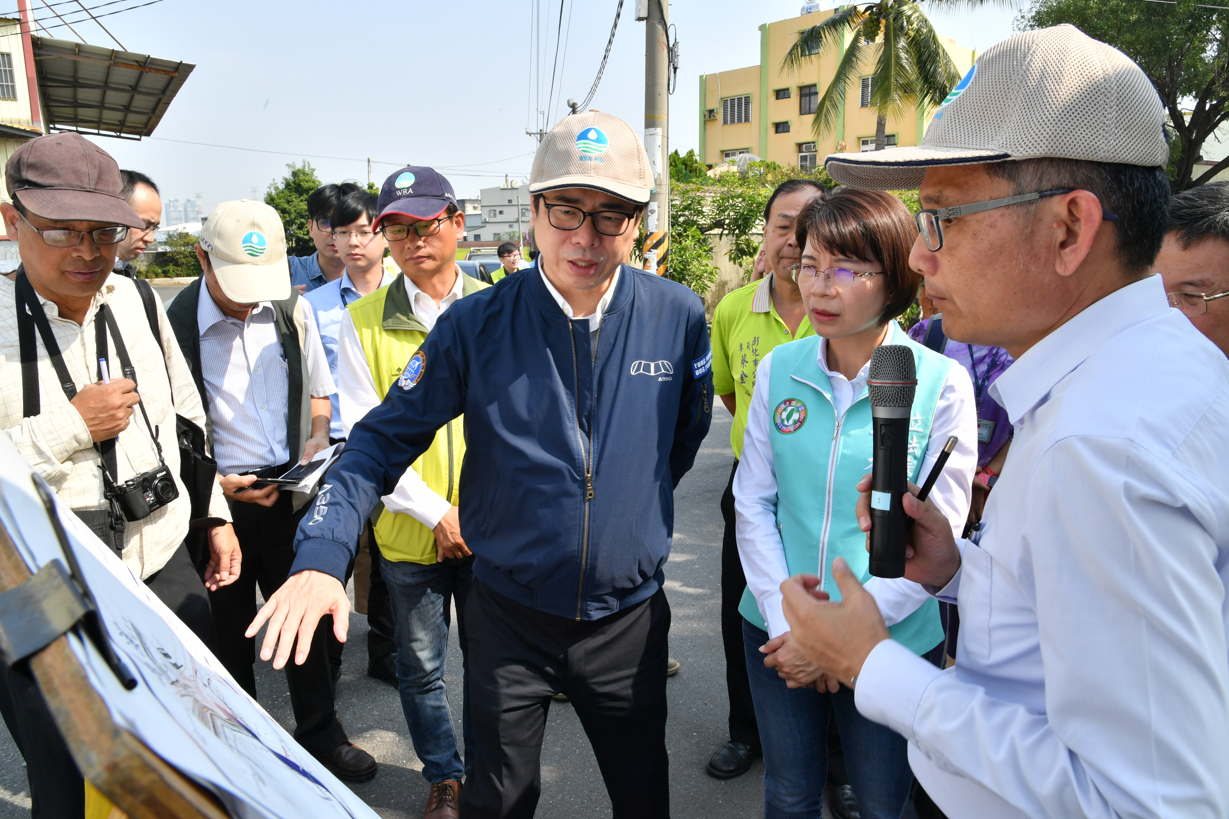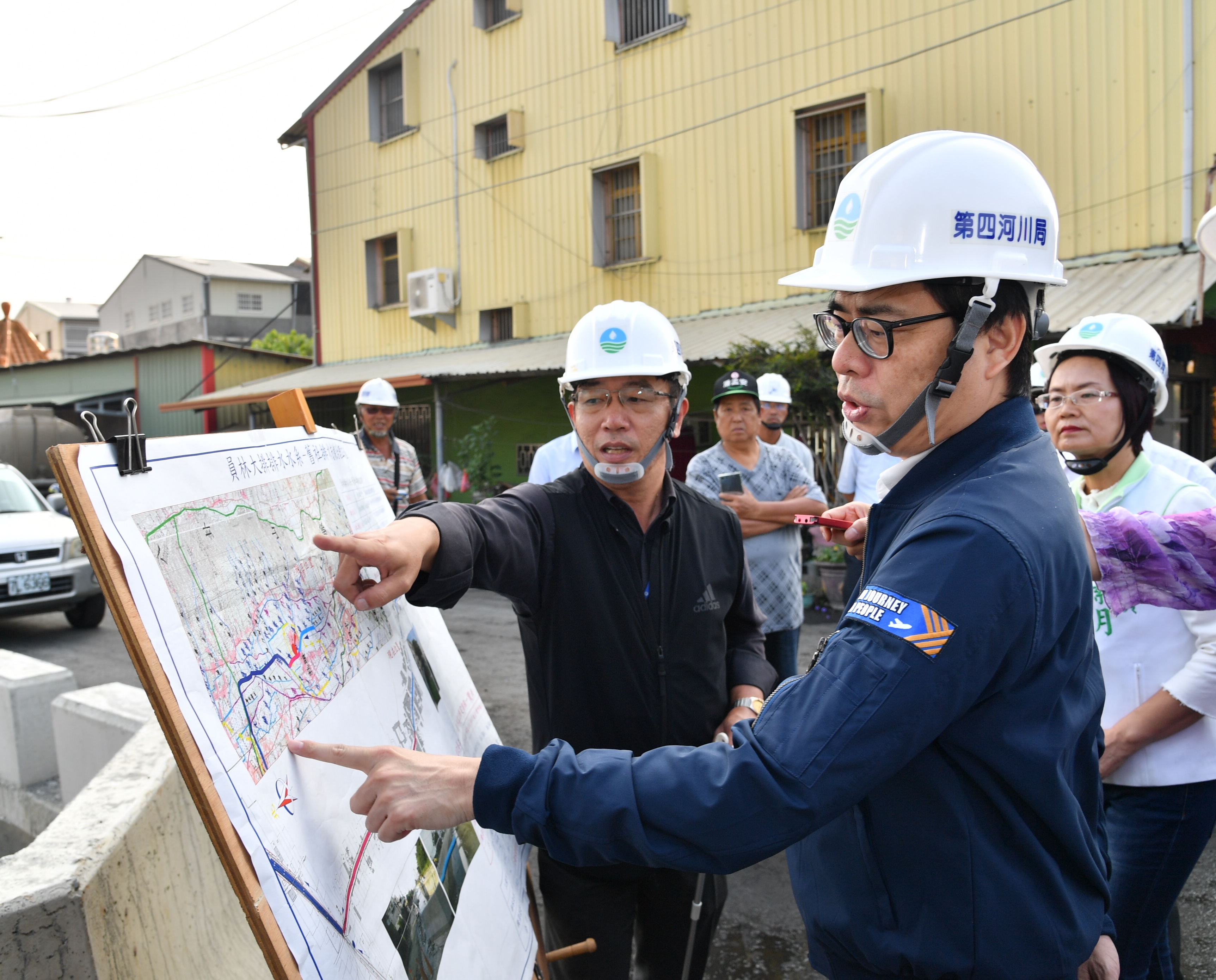 接下來陳其邁視察彰化縣彰化市、二林鎮及社頭鄉等地區排水改善及橋梁改建等工程進度,經濟部水利署表示,為推動彰化縣治水工作,於「流域綜合治理計畫」已投資41.32億元,辦理洋仔厝溪排水系統、萬興排水系統、員林大排排水系統、番雅溝排水系統、舊濁水溪排水系統等治理工作,而「前瞻計畫縣市管河川及區域排水整體改善計畫」則投入14.91億元辦理花壇排水、山寮排水等治理工程,本次勘查三處重大治水工程,將能有效改善彰化縣淹水情況。