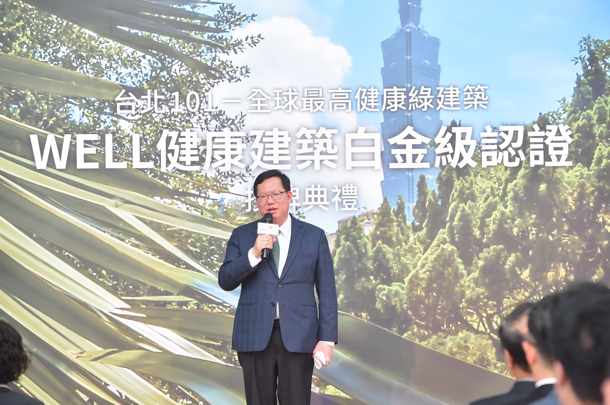 行政院副院長鄭文燦今(7)日出席台北101「WELL健康建築白金級認證」授牌典禮,並恭賀台北101大樓榮獲綠建築國際標準LEED及WELL健康建築雙白金認證,更創下WELL白金級認證最高分紀錄,代表企業推動建築ESG已成為未來的主流,也期盼民間能夠繼續加強商業設施及建築的減碳工作,持續落實節能減碳、打造循環經濟。