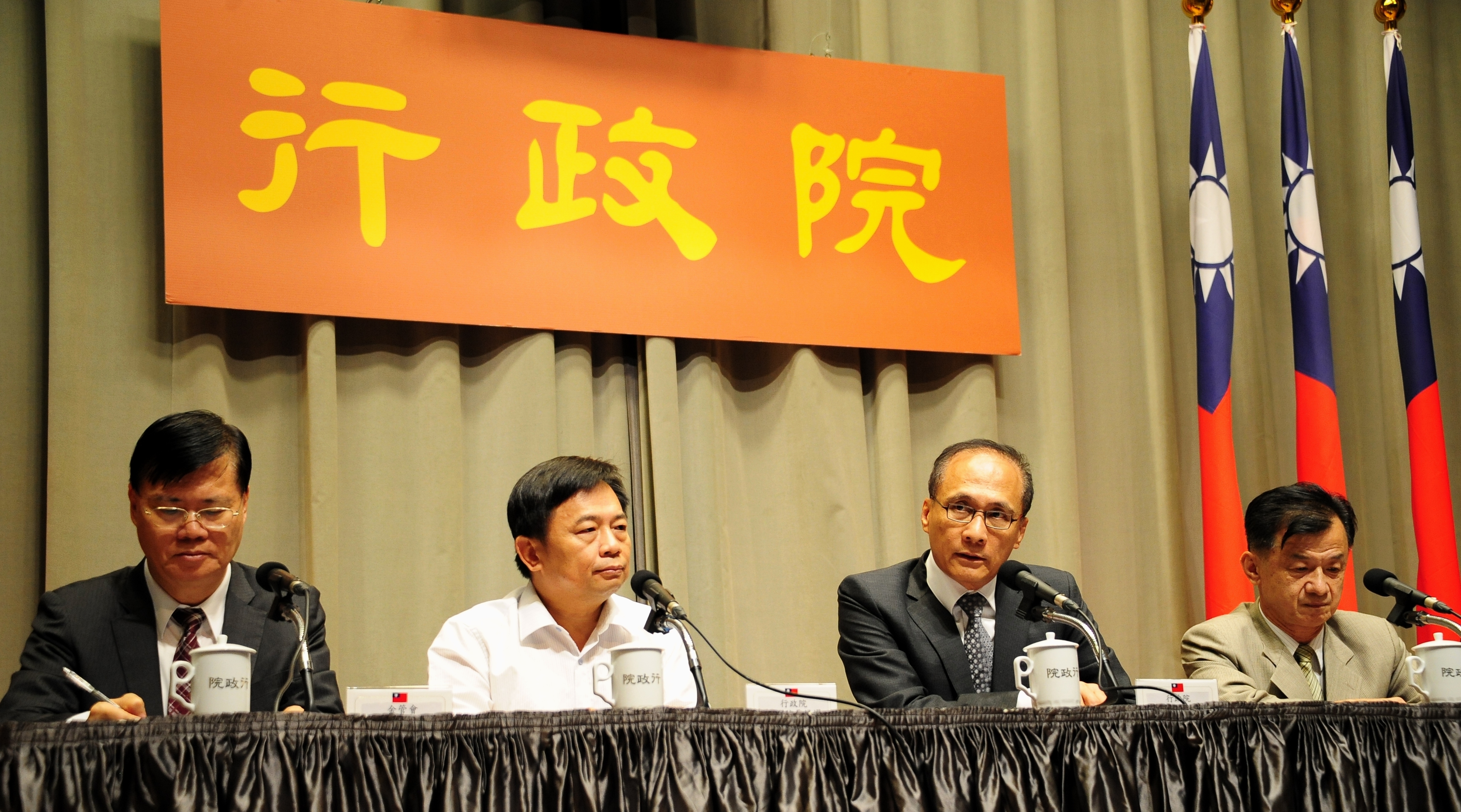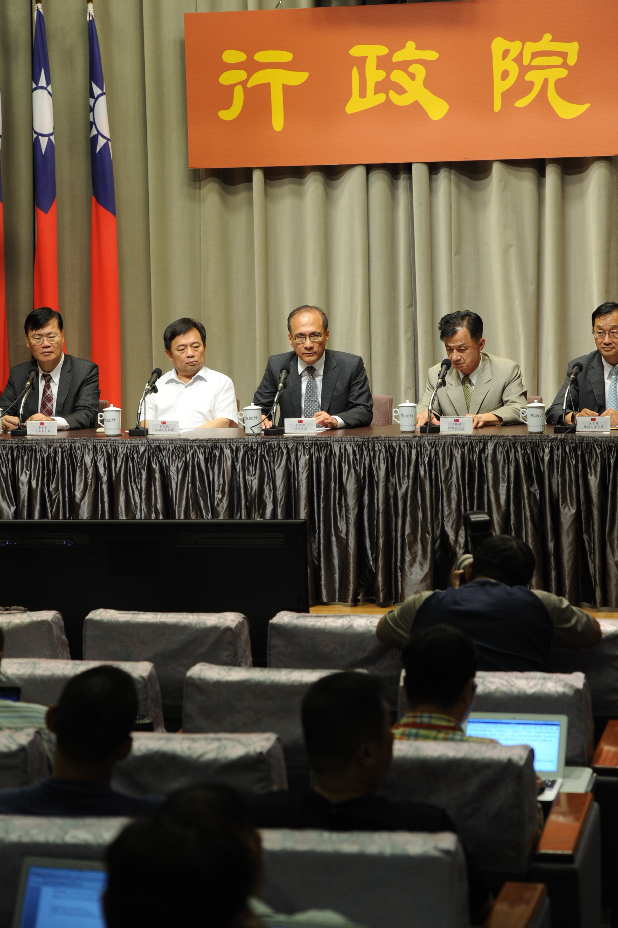 今日陪同院長出席記者會的有行政院副院長林錫耀、法務部長邱太三、金管會主委丁克華及副主委桂先農等。(撰稿:黃宇萱,電話:02-2341-0648)