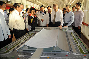 吳院長也聽取高鐵局有關桃園國際機場聯外捷運系統建設計畫簡報,並參觀機場捷運第2航廈A13車站工地。吳院長指出,原訂民國107年完成通車的施工時程,請高鐵局研議盡量提早完成,針對在場桃園地區民意代表表示希望機場捷運能延伸到龍岡、平鎮,吳院長也請高鐵局設法排除困難,併入桃園捷運路網整體規劃。
