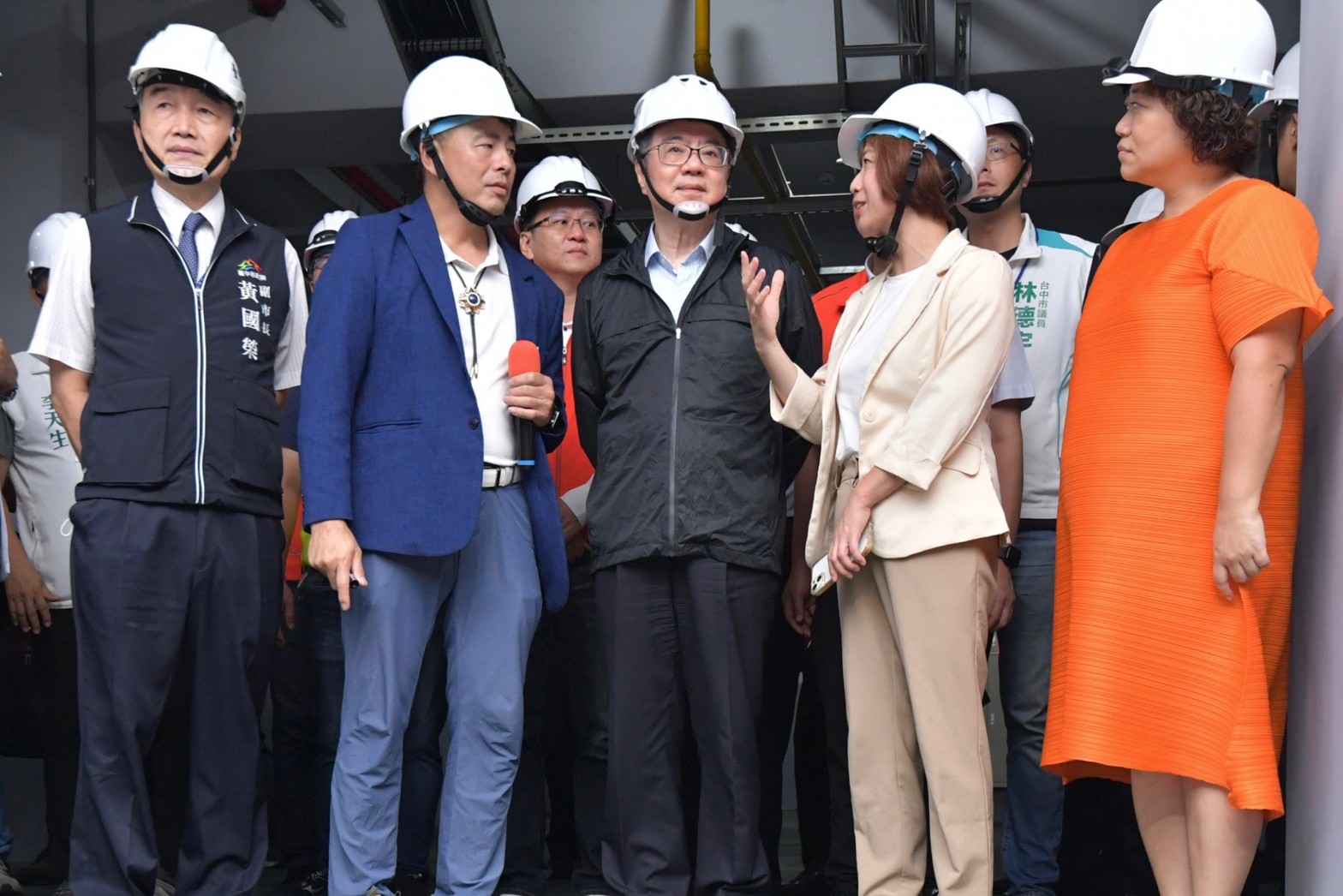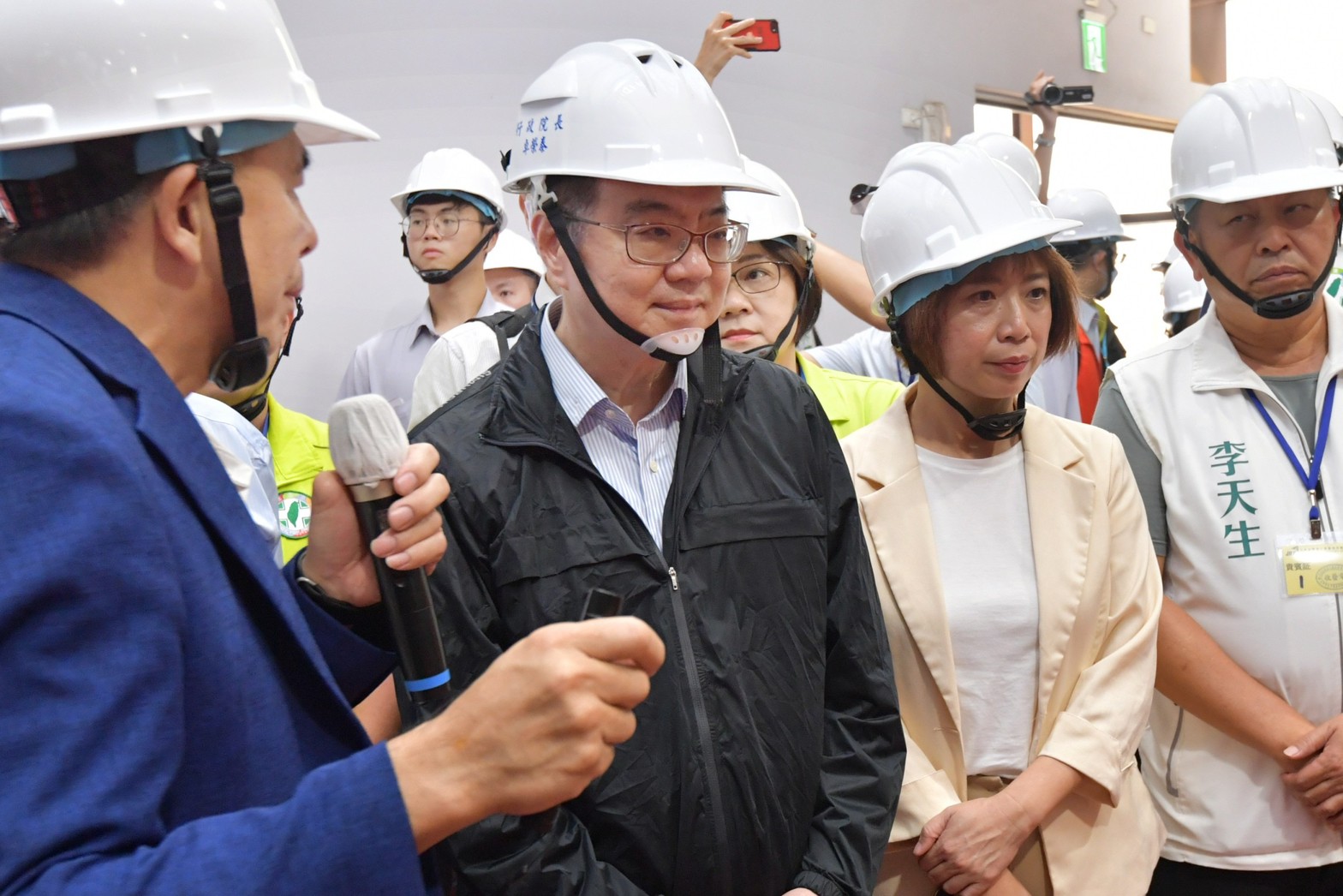 卓院長抵達後,首先偕同行政院陳世凱發言人、中部聯合服務中心莊競程執行長、經濟部連錦漳次長、產業發展署林德生主任秘書、何欣純立法委員、臺中市黃國榮副市長、經濟發展局倪世齡主任秘書、臺中市議會李天生議員、林德宇議員、張玉嬿議員、張芬郁議員、黃佳恬議員、蔡耀頡議員、昆兆益公司陳沛潔執行長及金屬工業研究發展中心賴永祥執行長等人,一同聽取吳忠賢董事長簡報,了解該公司背景、企業文化、合作產業,以及自動機具等無人化、智慧化設備特點。