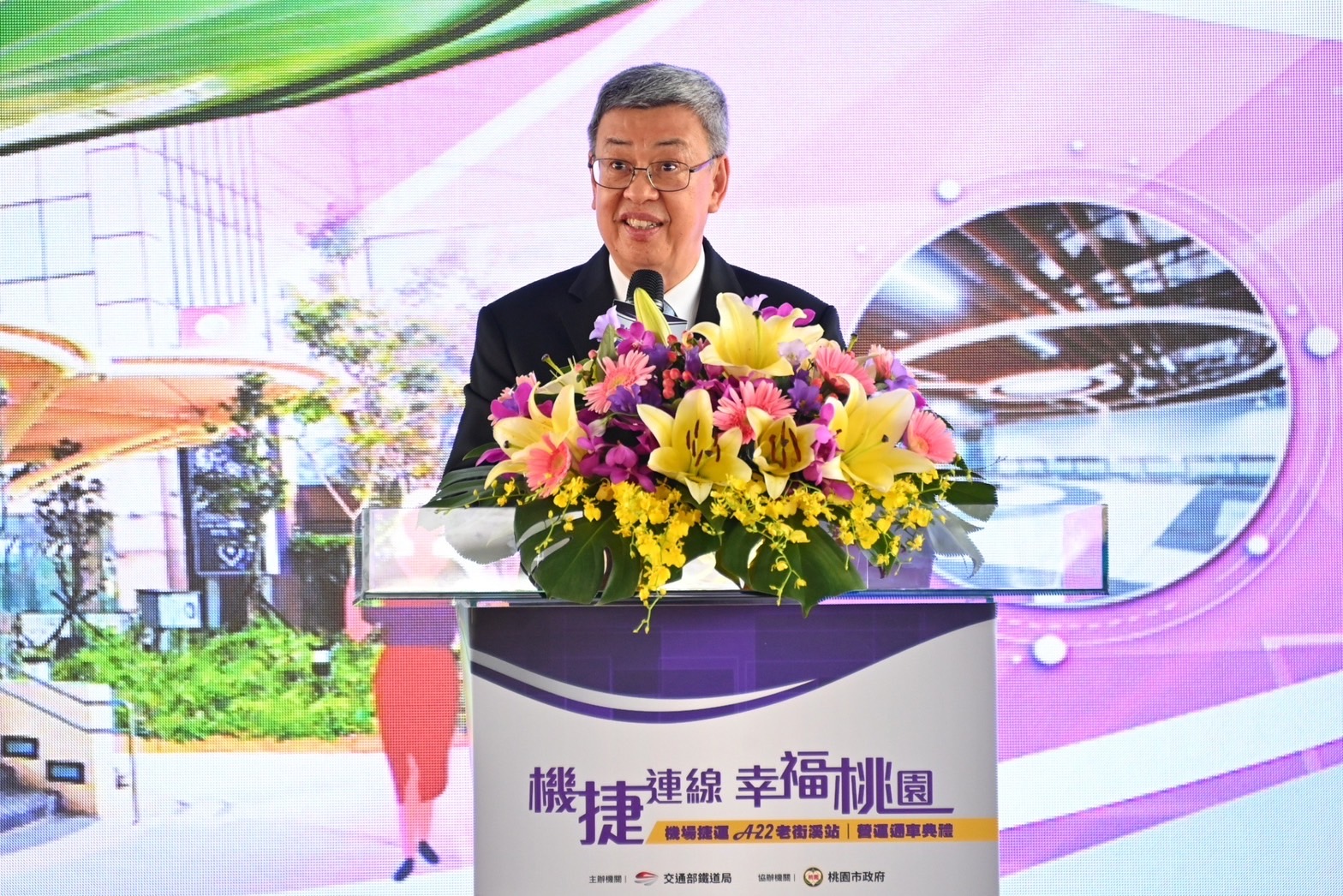 鄭副院長致詞時表示,蔡英文總統去(2022)年前來機捷A22老街溪站視察工程進度時,即指示要以「安全營運為第一優先」,尤其機場捷運累積許多國內優秀廠商的付出,包括台灣世曦、中興工程、大陸工程、中華工程等團隊,同時中央與地方也一起通力合作,克服機捷與桃園捷運綠線不同系統整合、土地徵收與補償等挑戰。另外,針對桃捷車廂購置部分,副院長指出,由於車廂從訂購至交付需耗時3年,他會請交通部鐵道局儘速研議,使購車計畫能夠早日定案,以期增加機捷發車頻率,未來資產也會移轉桃園捷運公司,展現中央對該公司最大的支持。