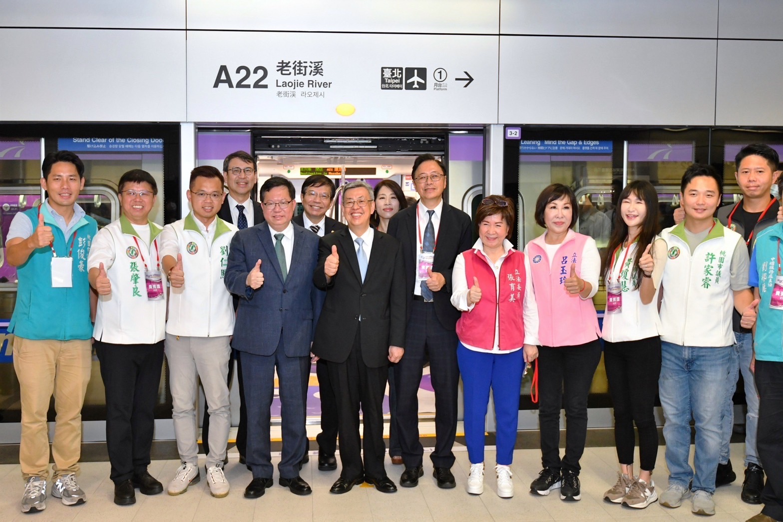 行政院長陳建仁及副院長鄭文燦今(31)日聯袂出席「機場捷運A22老街溪站」營運通車典禮,並由A22老街溪站搭車至A21環北站,體驗全新通車路段。陳院長表示,此工程開挖至深達26公尺的地底,短短2公里工程即投入173億元經費,相當不簡單,幸賴中央與地方攜手合作,才能將桃園機場捷運建設得如此成功。未來機捷也將繼續延伸至A23中壢站,並銜接桃園捷運綠線,讓桃園公共運輸更便利,進一步帶動桃園與中壢地區蓬勃發展,使中壢成為大繁榮商圈,造福在地鄉親。