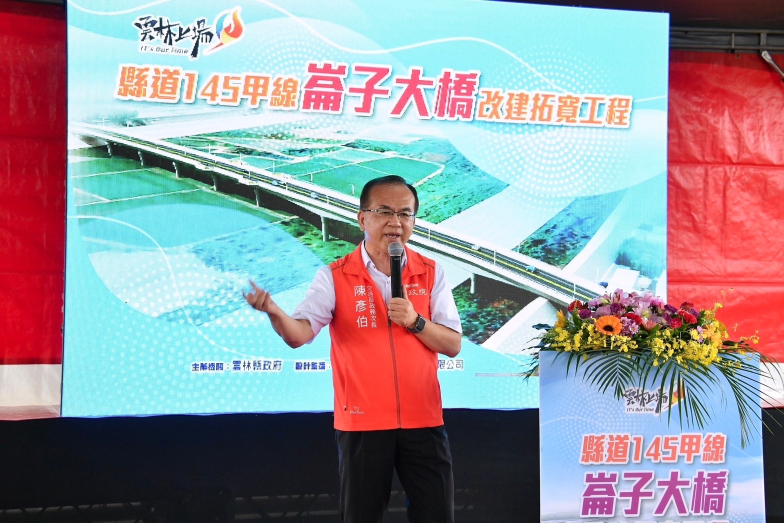 陳院長表示,蔡英文總統上任後,秉持建設不分黨派、不分縣市的理念推動各項建設;其中,在交通建設部分,即透過前瞻基礎建設計畫及其他公共建設計畫,挹注雲林縣近71億元經費。院長指出,前瞻建設特別預算當初在立法院審議時,引發部分在野黨立委丟水球、灑麵粉抗議,還有人批評會債留子孫、造成地方財政困擾等,但他認為並非如此,前瞻建設不僅有助於均衡城鄉發展,更讓全臺各縣市受益。他要感謝蘇治芬立委及林文瑞立委在立法院大力支持前瞻預算審議,以及立法院最終通過相關預算,事實證明前瞻建設確實是一項福國利民的政策。