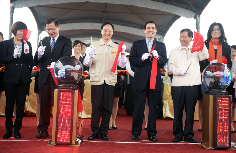 隨後,馬總統、江院長、桃園縣長吳志揚、新北市副市長許志堅、交通部長葉匡時及行政院發言人鄭麗文等人共同剪綵,宣布五楊計畫五股中壢段正式通車。