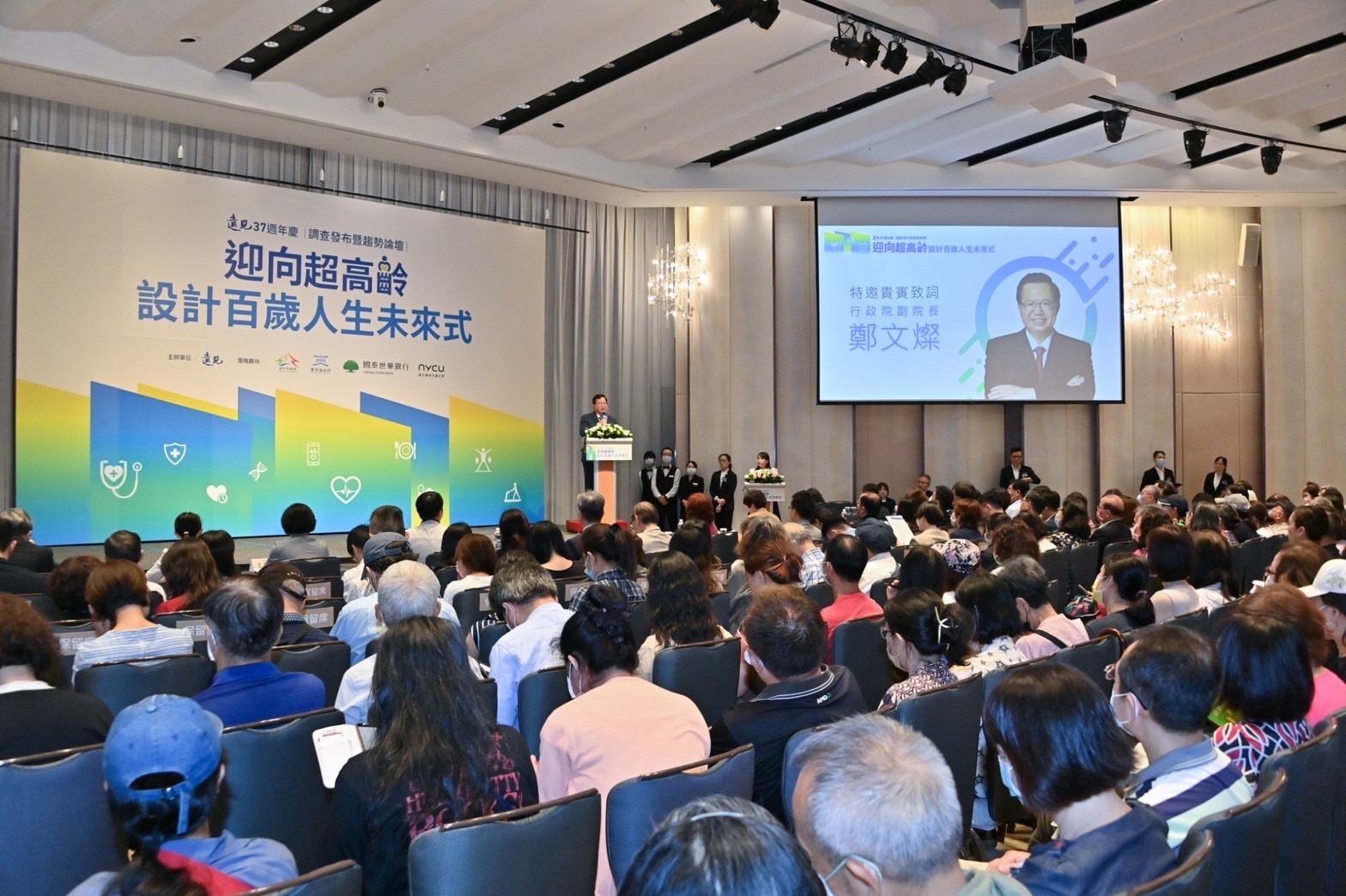 行政院副院長鄭文燦今(2)日出席「遠見37週年慶調查發布暨趨勢論壇-迎向超高齡設計百歲人生.後青春進行式」時表示,為因應臺灣人口老化趨勢,政府除訂定「因應超高齡社會對策方案(112-115年)」,預計4年投入逾1,200億元經費,推動345項工作外,自106年起也積極架構社區化、普及化與在地化長照2.0體系,提供居家、社區到住宿式照顧的連續多元服務,更在前端的預防保健及健康促進制定多元政策,提供40歲以上民眾成人預防保健服務,也期盼大家透過今日論壇提供更多寶貴意見,協助臺灣在步入超高齡社會的過程中做好準備。