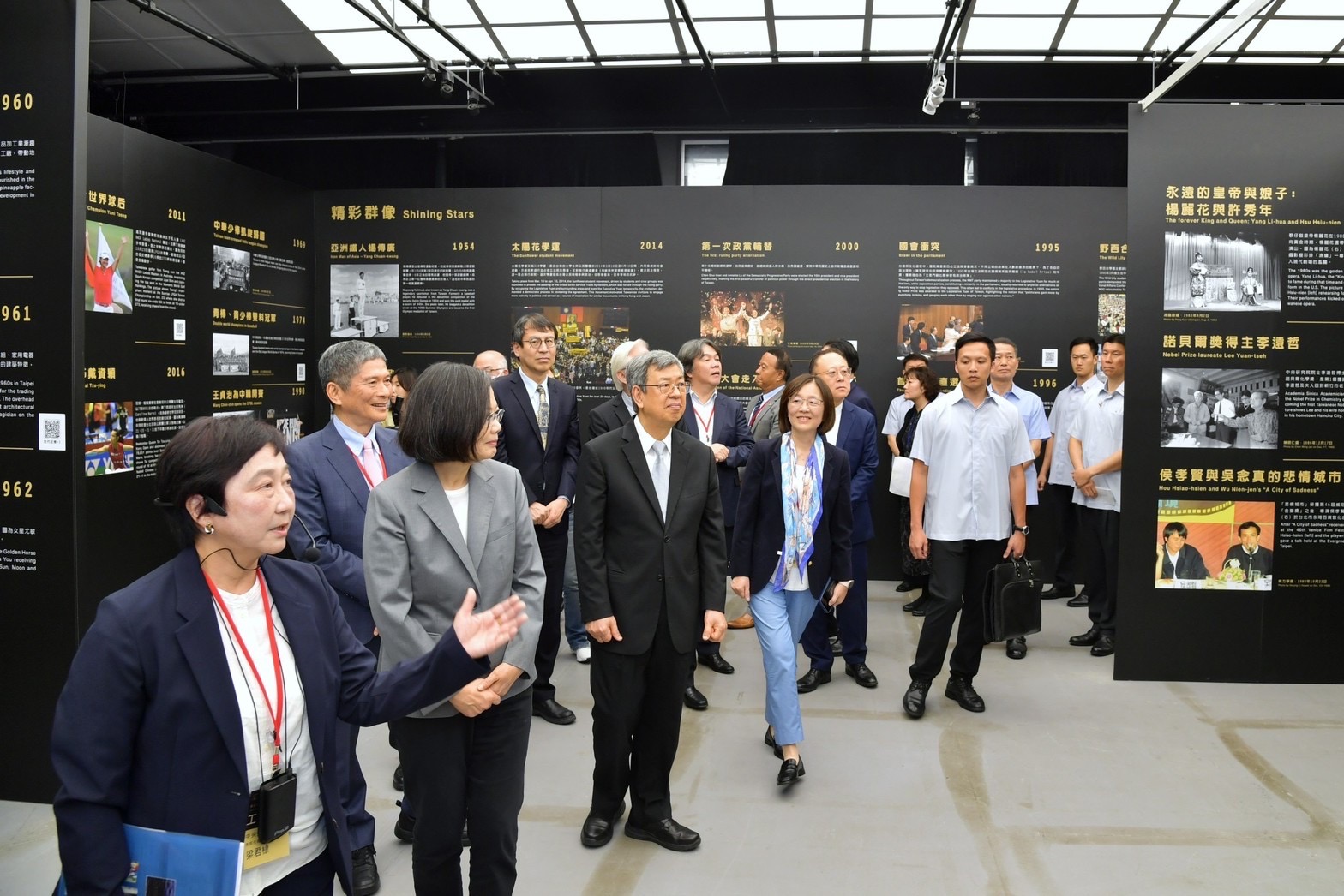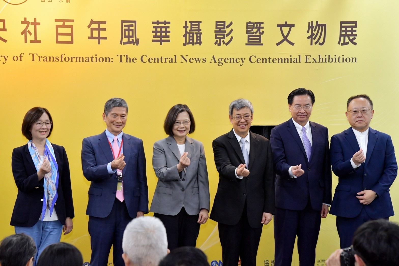 陳院長到場後,與蔡英文總統、總統府葉菊蘭資政、黃重諺副秘書長、行政院政務委員兼國家科學及技術委員會吳政忠主委、行政院林子倫發言人、文化部史哲部長、外交部吳釗燮部長、國防部柏鴻輝軍政副部長、衛生福利部王必勝次長、中央社李永得董事長、曾嬿卿社長及其他國內新聞媒體董事長、總編輯與傳播學界學者等貴賓在座位上合影,並欣賞開場演唱表演,隨後觀賞開幕影片,回顧中央社百年發展歷史與臺灣民主進程。