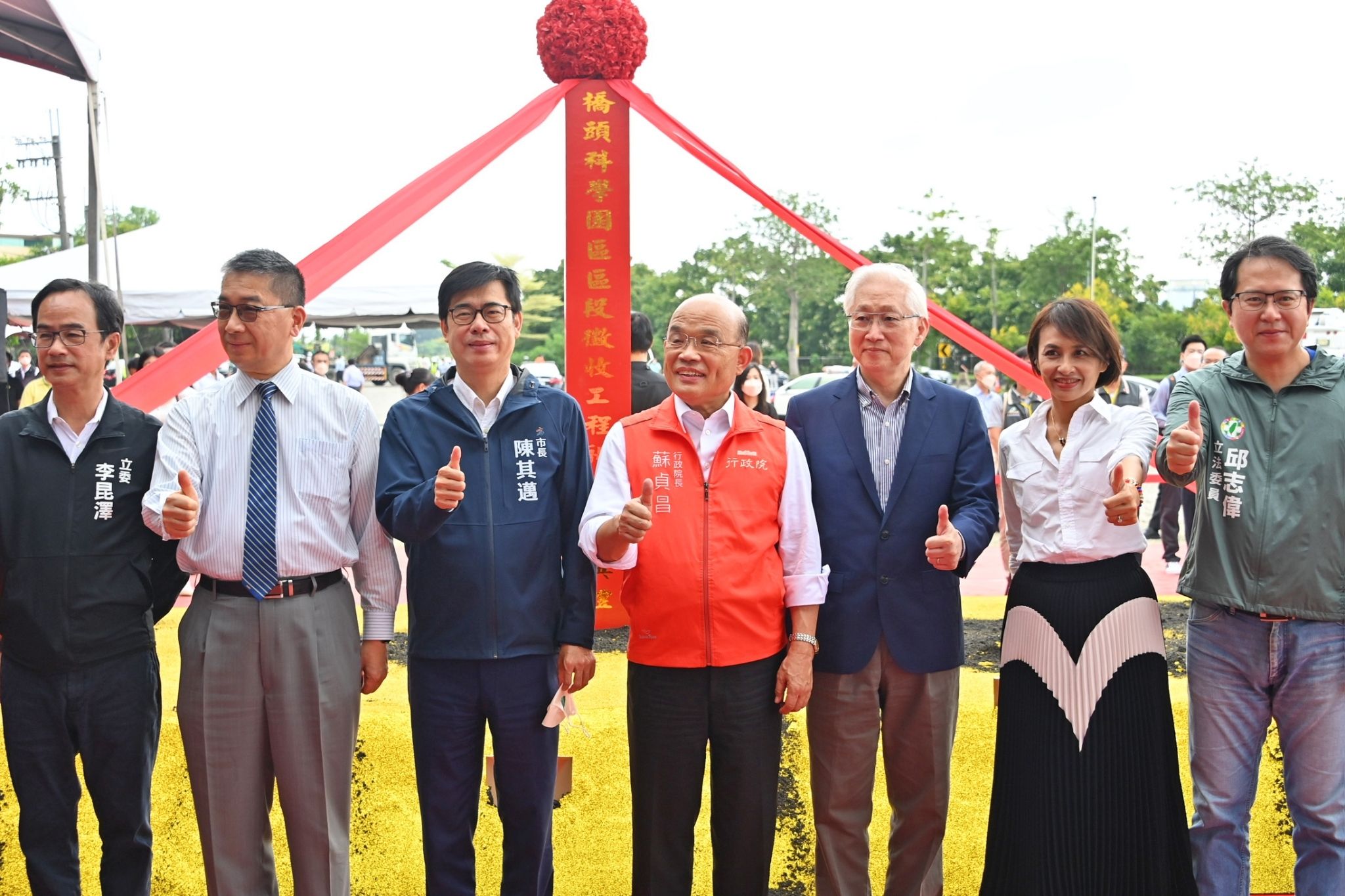 蘇院長指出,他於2019年12月核定橋頭科學園區籌設計畫,當時高雄市長陳其邁正好擔任行政院副院長一職,因為其大力支持,才使本案得以順利推動,而從該計畫核定到今天的動土,花費不到3年時間,相當不簡單,也讓原本這一片荒蕪之地,變成一個聚寶盆。