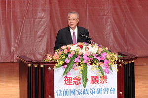 行政院長吳敦義今(11)日出席行政院「理念與願景:當前國家政策研習會」時表示,未來應建立廉能政治及公義社會,兩岸和平發展,讓台灣成為富足康樂、文明常盛的國家。