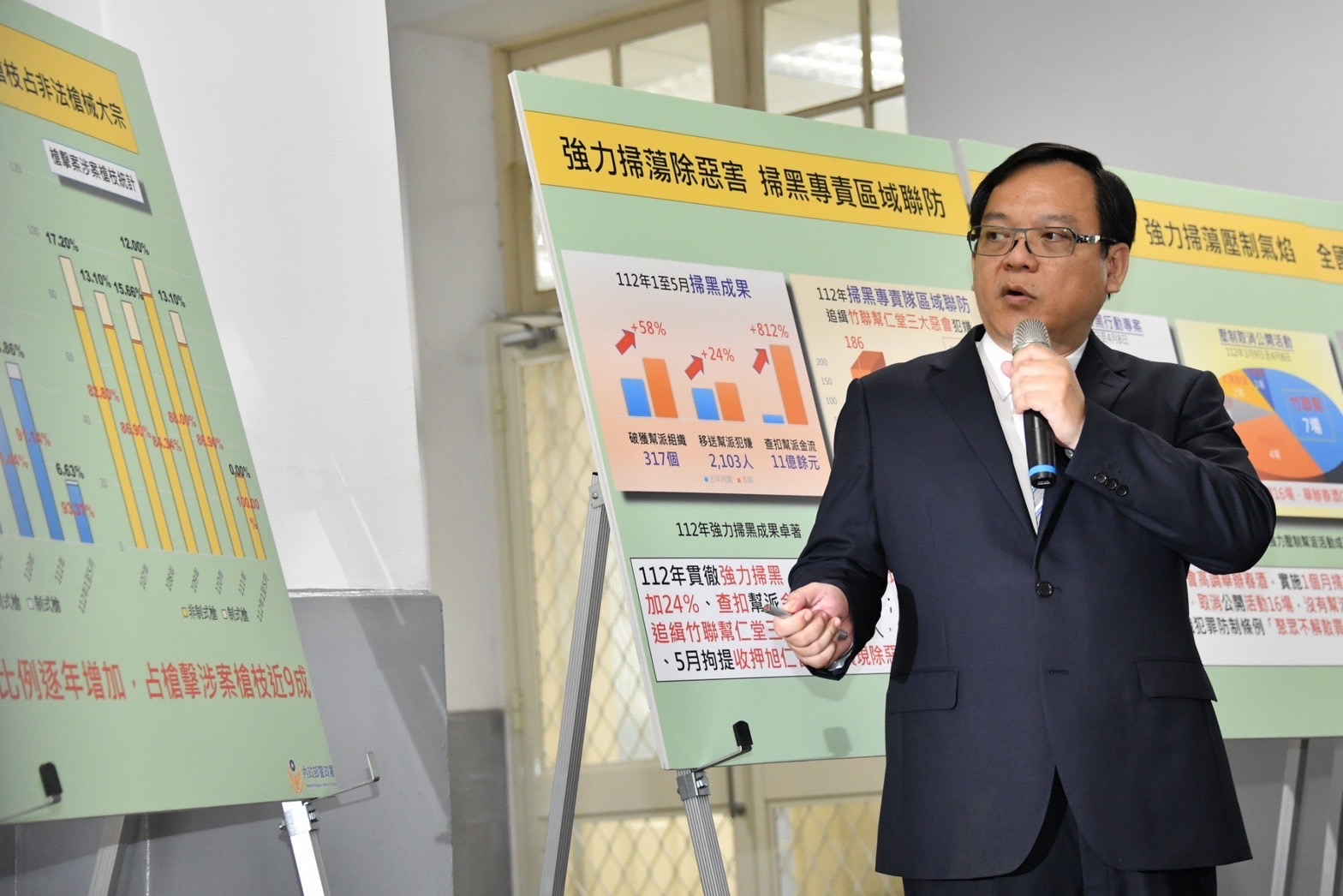 陳院長表示,警察同仁維護社會治安,不論掃黑、緝毒、打詐到道安,從不同面向守護國人安全,在防疫期間更協助落實各項檢疫措施,勤務繁重、相當辛苦,深獲國人肯定。院長提到今年2月國立中正大學犯罪研究中心公布的民調顯示,民眾對警察維護治安工作的滿意度超過7成,對住家附近治安觀感的滿意度更是超過8成,這是國人對於全體警察的肯定,正因為有各位警察的辛苦付出,才能讓國家更安定、社會更安全。