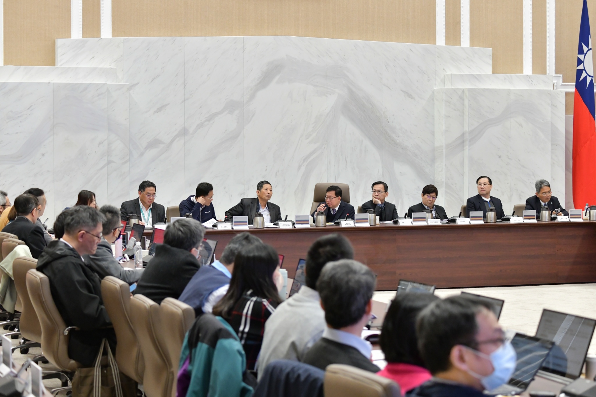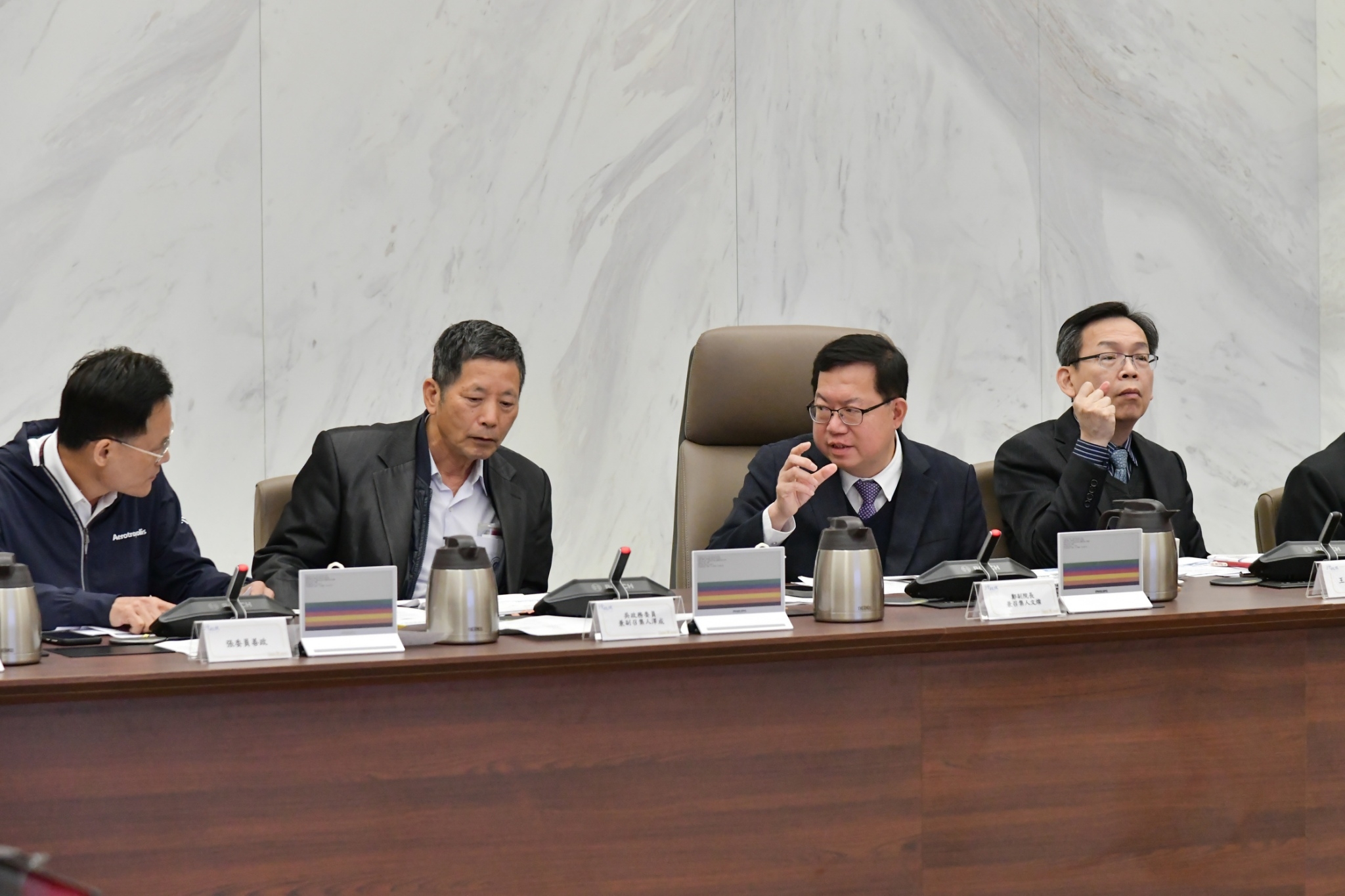 針對交通部民航局所提「開發建設」報告,鄭副院長肯定桃園市政府為利民眾先行進場自建住宅,採「界址確認(113年2月起)」、「土地點交(114年1月起)」兩階段辦理安置配地點交。為利114年2月完成坵塊點交民眾作業,請經濟部、交通部督請所屬國營事業,於113年11月前完成水、電、天然氣、電信供應,桃園市政府同步必須完成污水管線、聯外道路等其他工項,於113年12月全數完工。