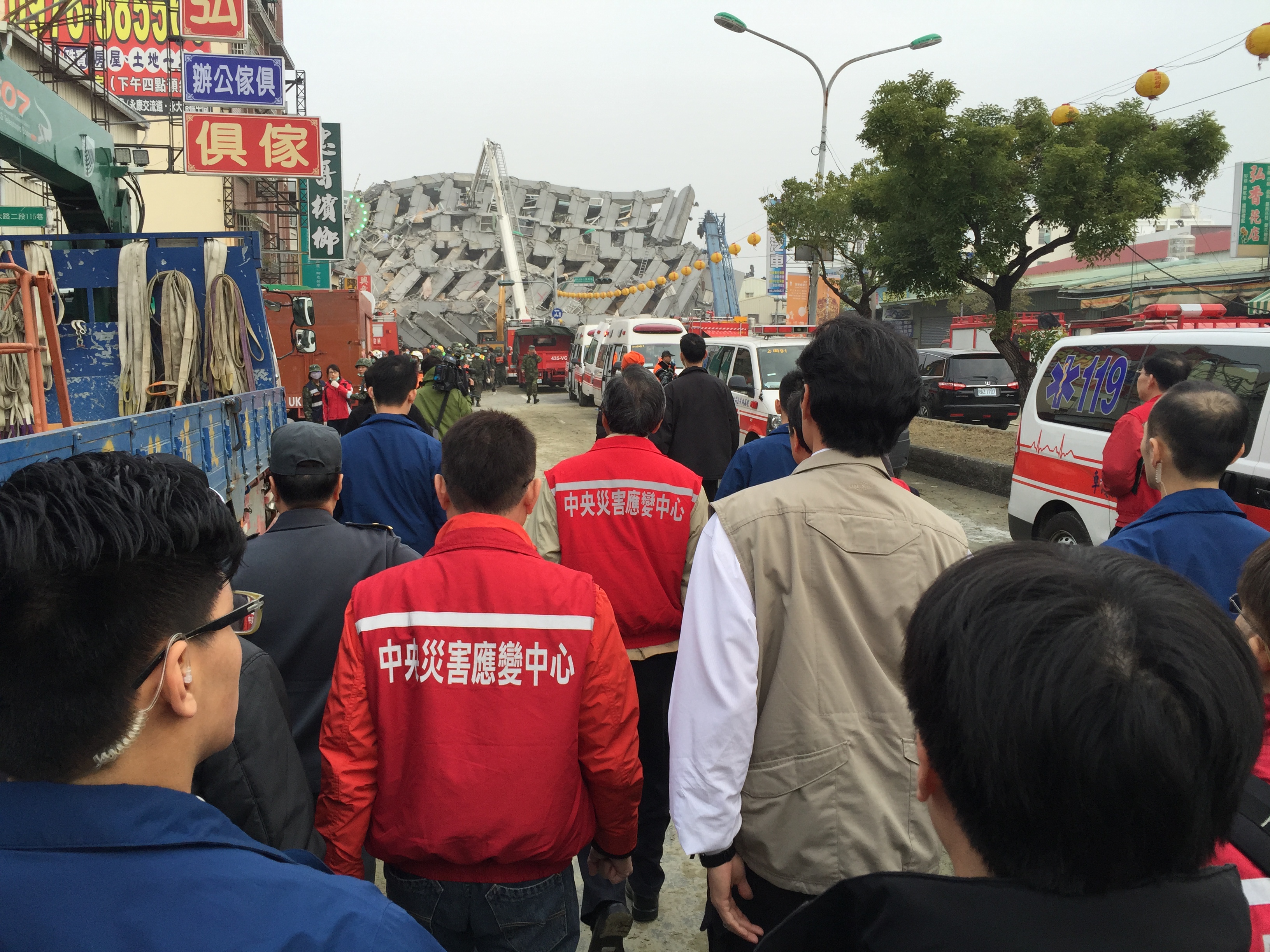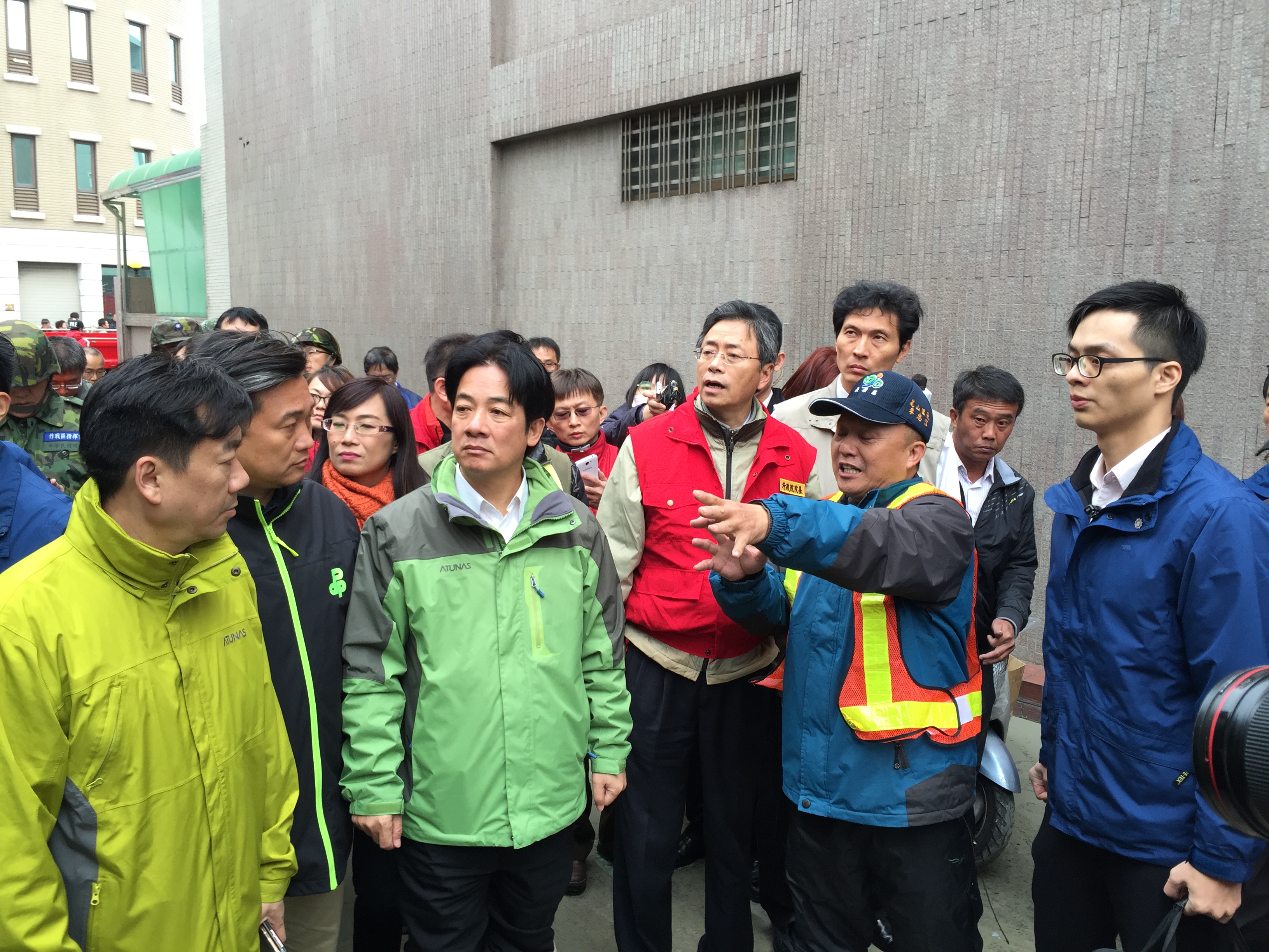 今(6)日凌晨3時57分高雄美濃發生芮氏規模6.4地震,造成臺南永康等地區傳出人員傷亡待救及大樓倒塌等災情,行政院長張善政隨即前往臺南市勘災時強調,一定會全力在救災黃金時間72小時內,儘快救出受困民眾,過去和臺南市從登革熱、寒害一直以來都是一條心共同面對,中央一定會和臺南市合作全力救災。