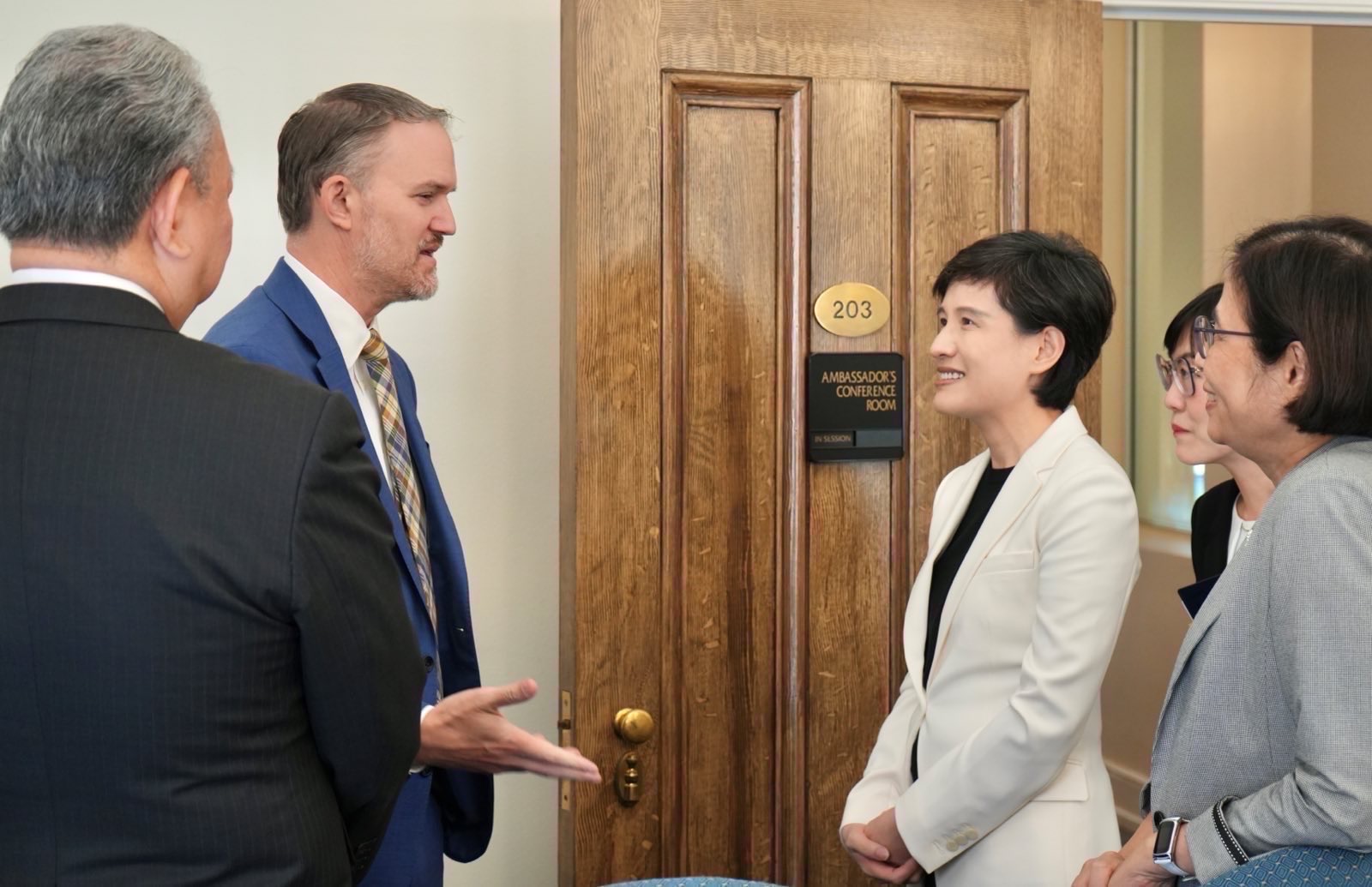 此外,楊珍妮總談判代表也會與美方談判代表進行實體會議的會前會,就當週議程等先行磋商。有時雙方對特定議題須更進一步技術性磋商,臺美技術官員也會在會場外進行溝通,以利了解彼此立場且不影響議程進度。